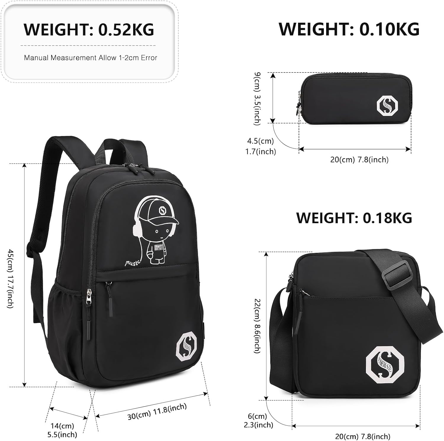- 【Leuchtendes Rucksack-Set】: Holen Sie sich unser 3-in-1-Set, inklusive einem Schulrucksack (45x30x14cm), einer Umhängetasche (22x20x6cm) und einem Federmäppchen (20x9x4.5cm). Passt für einen 15,6 Zoll Laptop und hält alles Notwendige organisiert.