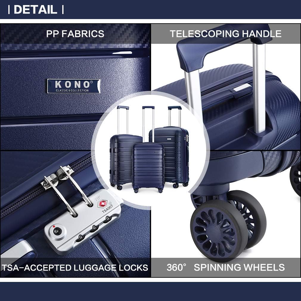 Kono Zwillingsrollen Reisekoffer TSA-Schloss 55cm Boardcase Trolley Koffer Polypropylen Hartschale R