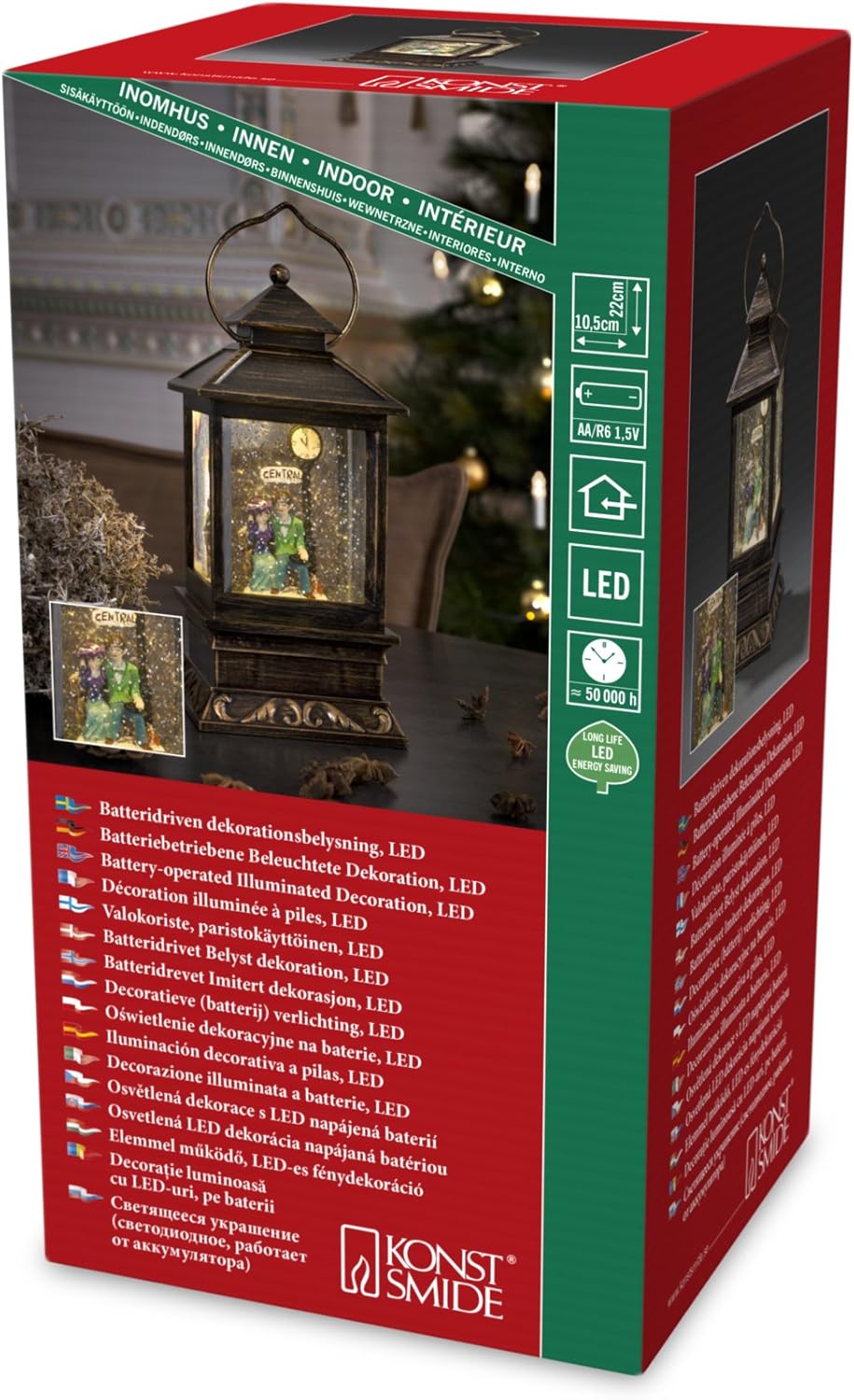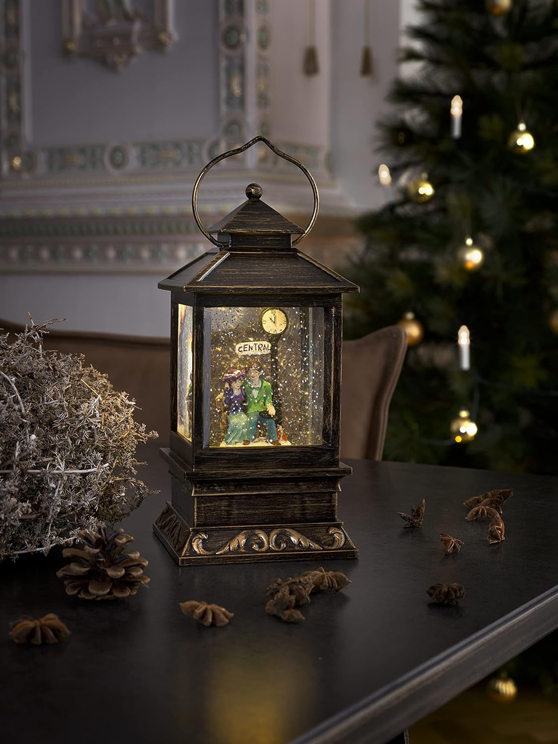 - Konstsmide 2809-000 LED-Laterne Schneelandschaft Warmweiss LED Messing beschneit, mit Wasser gefuell