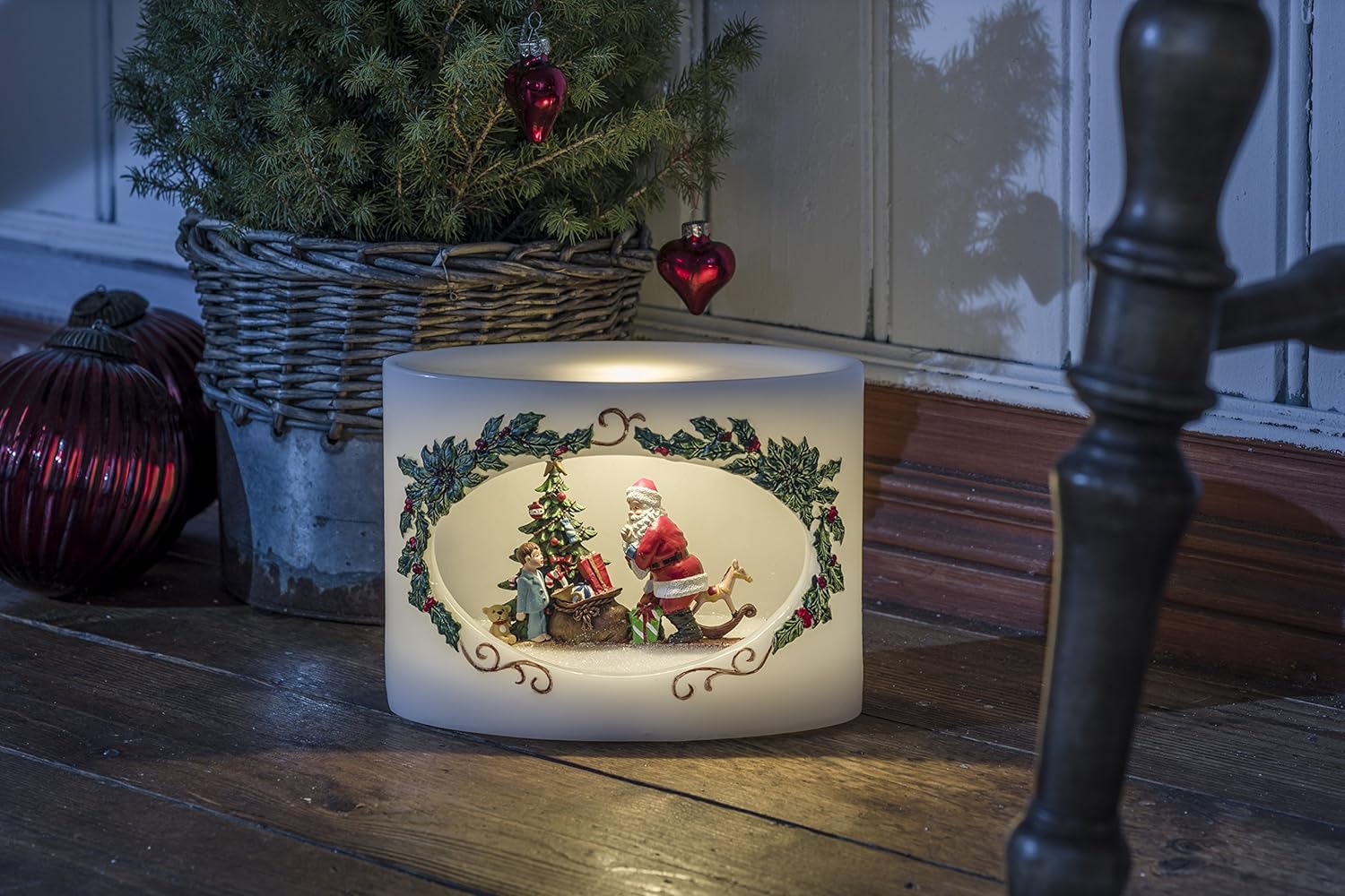 Konstsmide LED Echtwachskerze Weihnachtsmann mit Kind, weiss, mit 5h Timer, weisse Diode, batteriebe