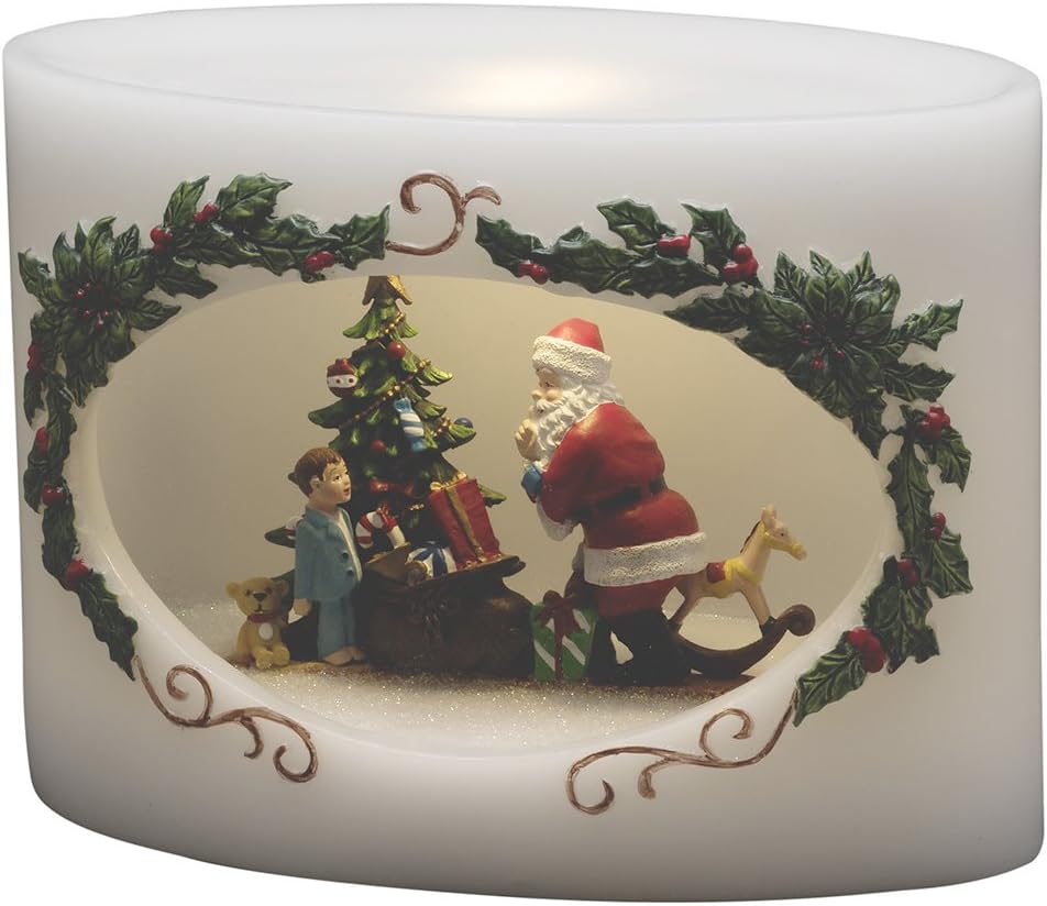 • Mit dieser nostalgischen Echtwachskerze ist weihnachtliche Stimmung rt. Freuen Sie sich auf die Romantik flackernden Kerzenlichts und den Zauber der dreidimensionalen Nostalgieszenerie, die der sanft illuminierte Kerzenkörper wunderschön rahmt.