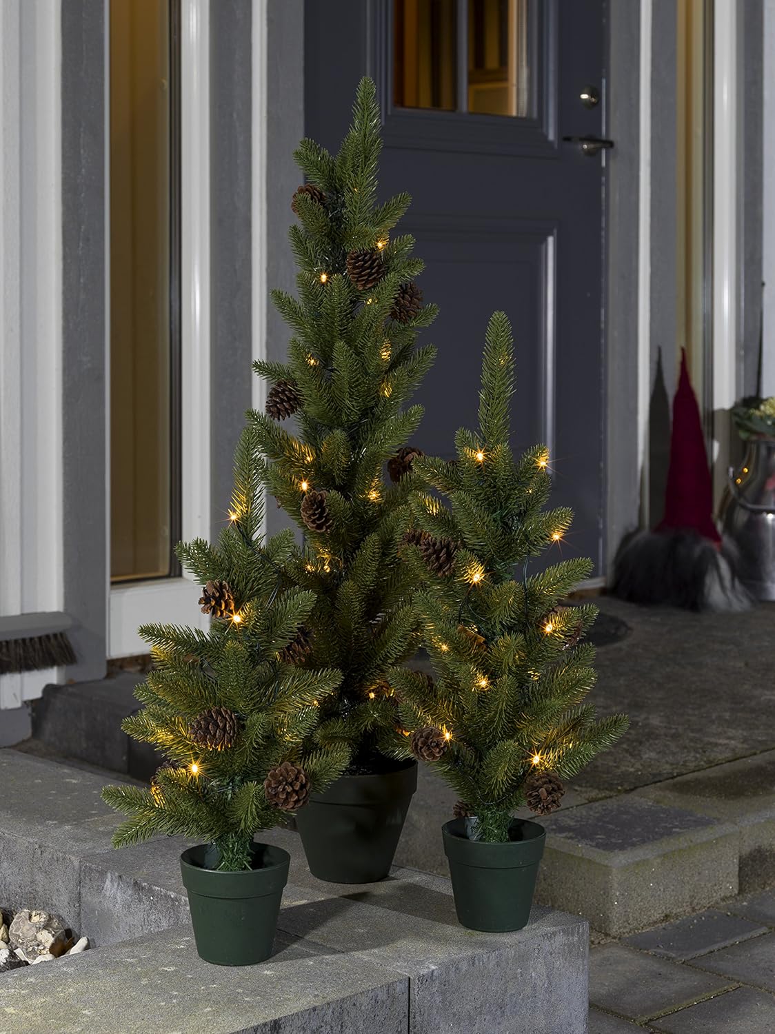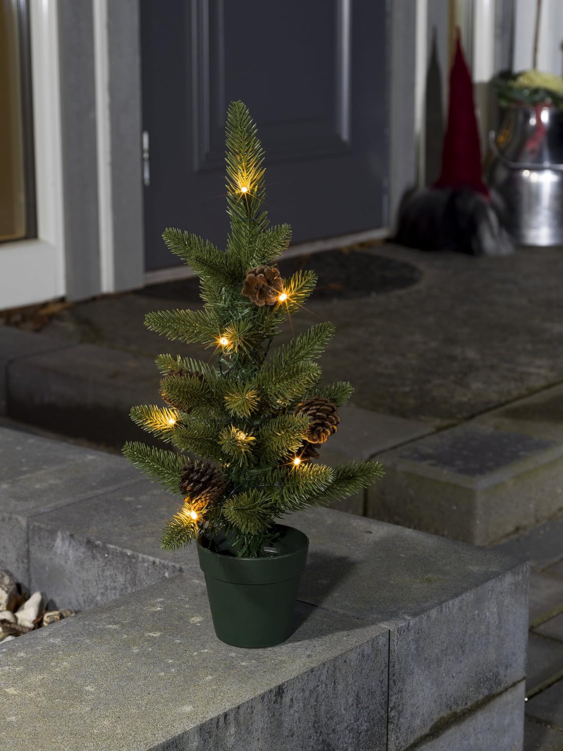 Konstsmide 3780-100 LED Weihnachtsbaum mit Tannenzapfen und Topf / für Aussen (IP44) / Batteriebetri