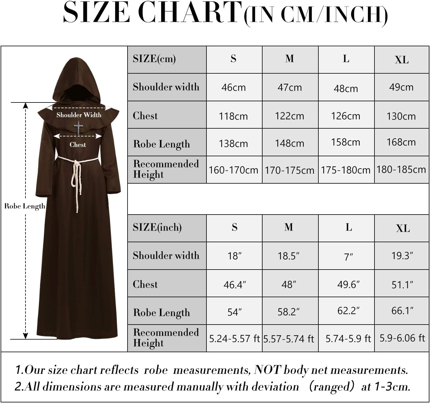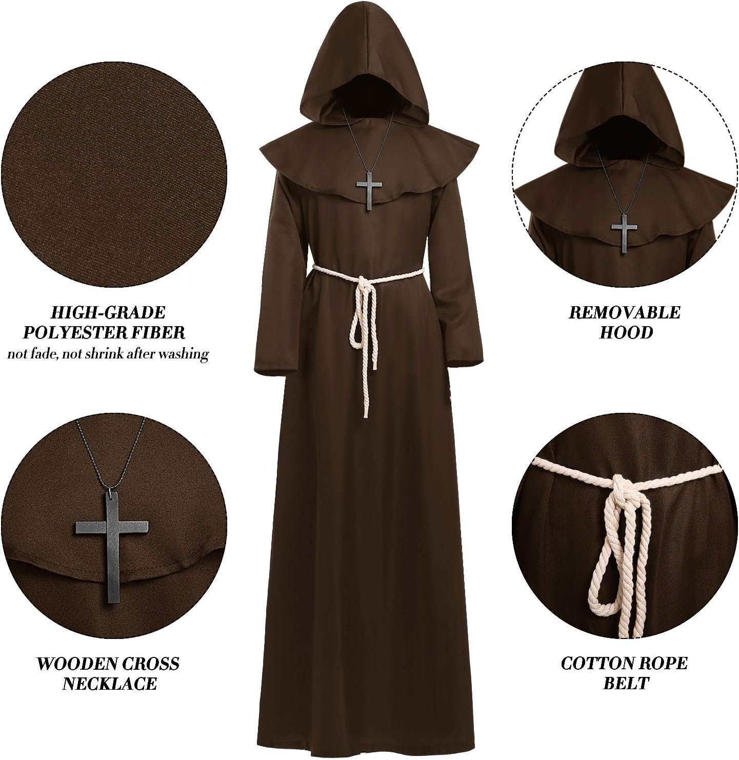- ☆Einschliesslich☆: Das Paket enthält Kapuzengewand, Seilgürtel und eine Kreuzkette. Die Länge des Baumwollseils beträgt ca. 197cm, um an viele Taillengrössen angepasst zu werden, und das Heilige Kreuz ist aus Holz gefertigt .