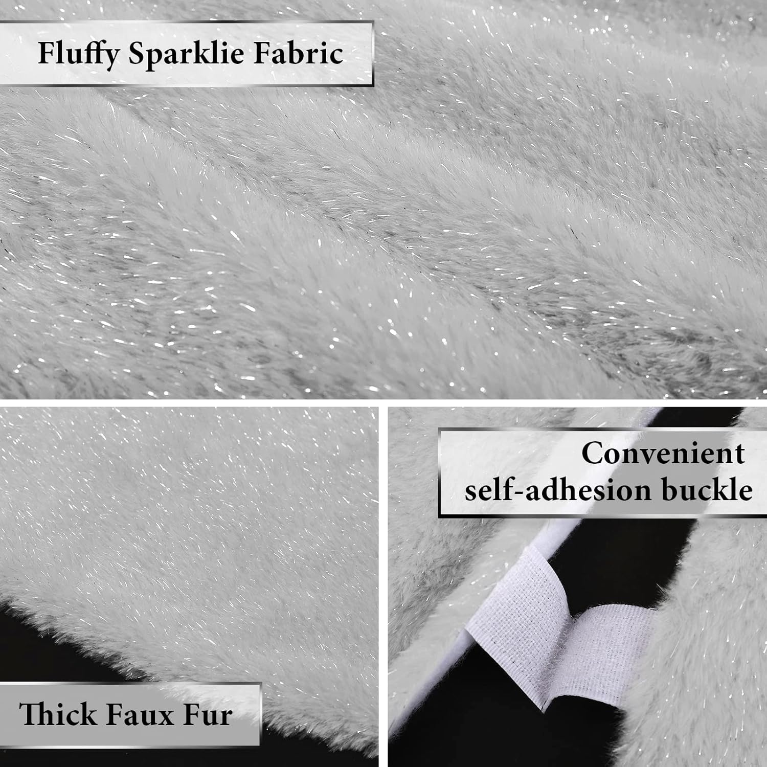 - Mit Glänzender Silberner Faden: Weihnachtsbaumröcke mit glänzendes Silber sind perfekte Akzente, um Weihnachtsdekorationen zu binden und hässliche und sperrige Ständer zu tarnen. Unter schönen funkelnden Lichtern sieht verschwenderisches Fell