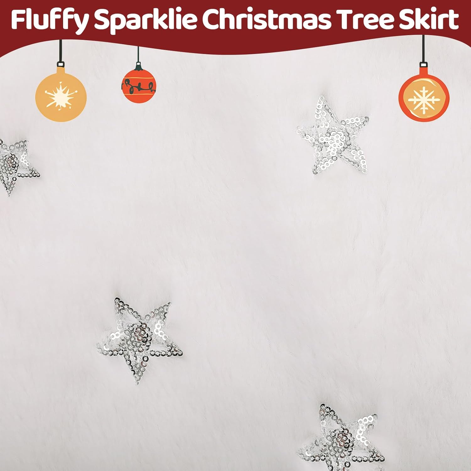 - Funkelnde Pailletten-Sterne:Als Highlight zieren glänzende Pailletten-Sterne diesen Baumrock, die im Licht Ihrer Weihnachtsbeleuchtung schimmern.