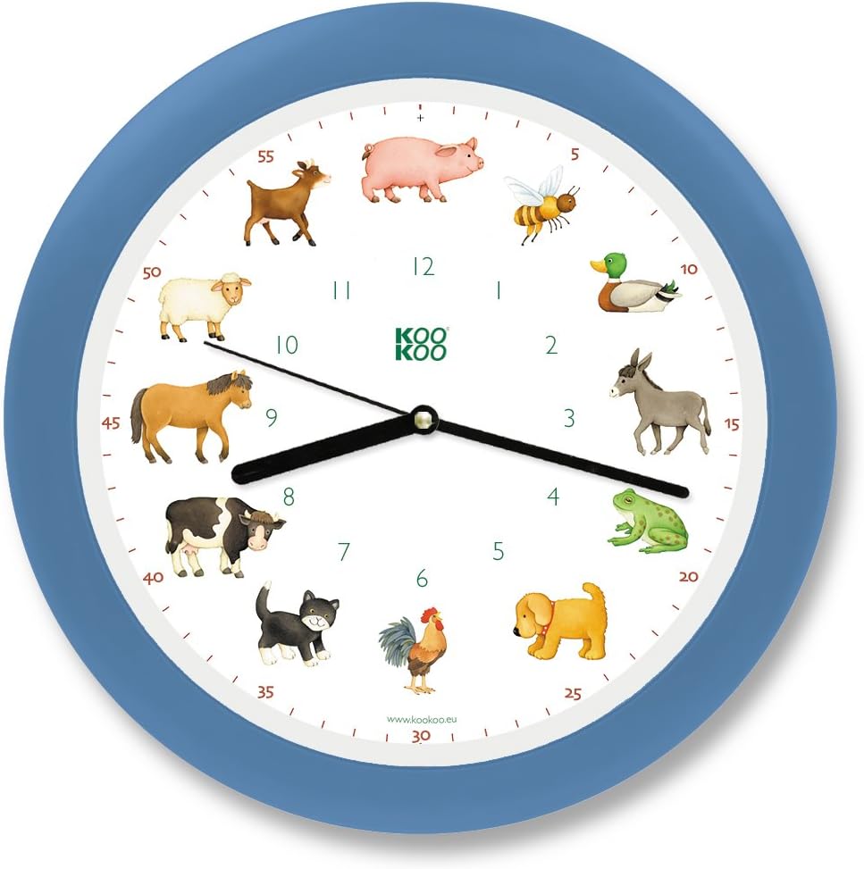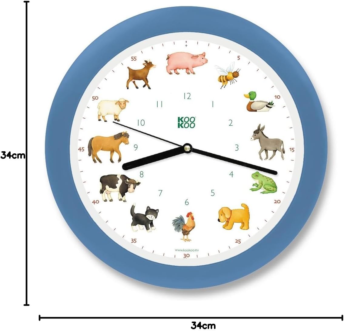 KOOKOO KidsWorld Himmel-blau, Bauernhofuhr mit 12 echten Tierstimmen vom Land
