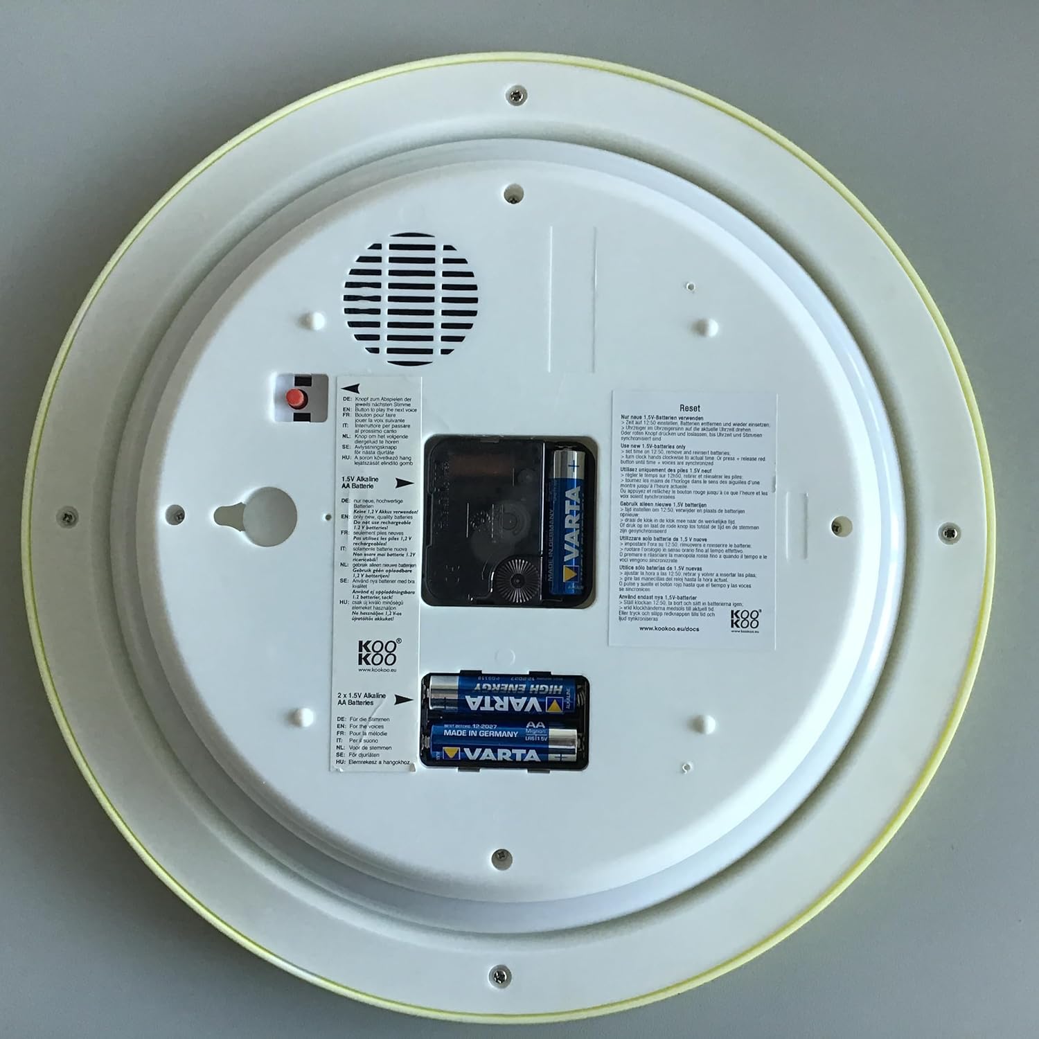 • Mitgeliefert wird eine Begleitbroschüre mit einem Frage- und Antwortspiel sowie einer Malvorlage der fröhlichen Tiermotive zum Aus- und Nachmalen. KooKoo KidsWorld hat einen Durchmesser von 34 cm und ist mit 6 verschiedenen Rahmenfarben oder mit einem