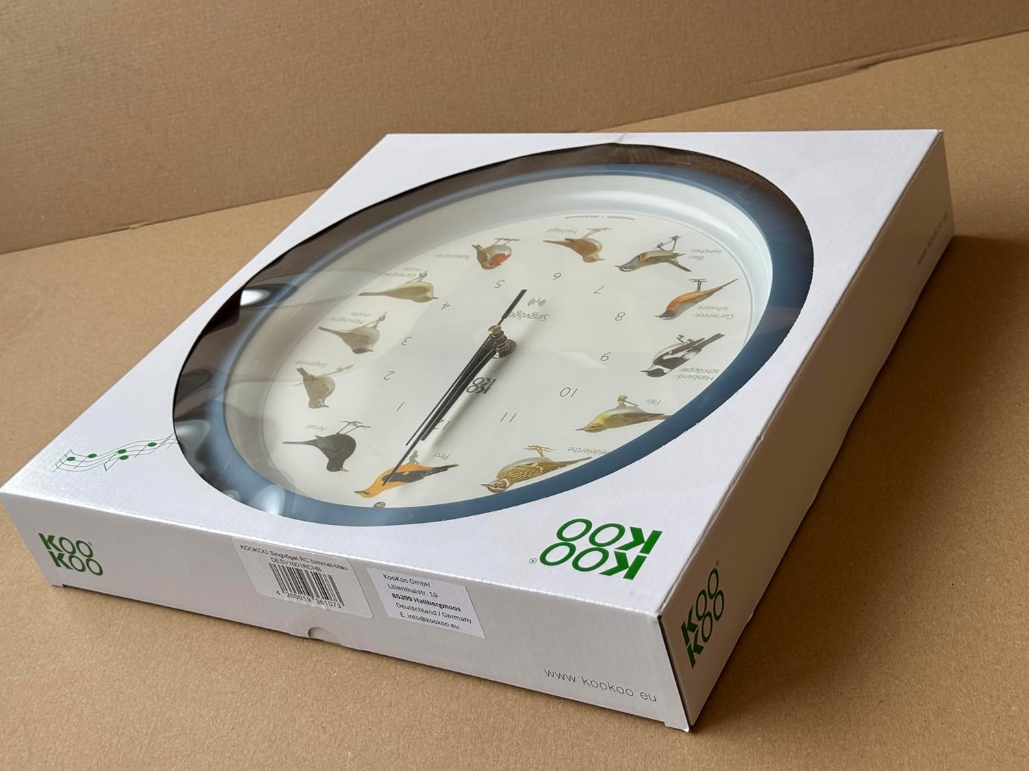 KOOKOO Singvögel Himmel-Blau, Die Singende Vogeluhr, mit 12 heimischen Singvögeln und echten, natürl