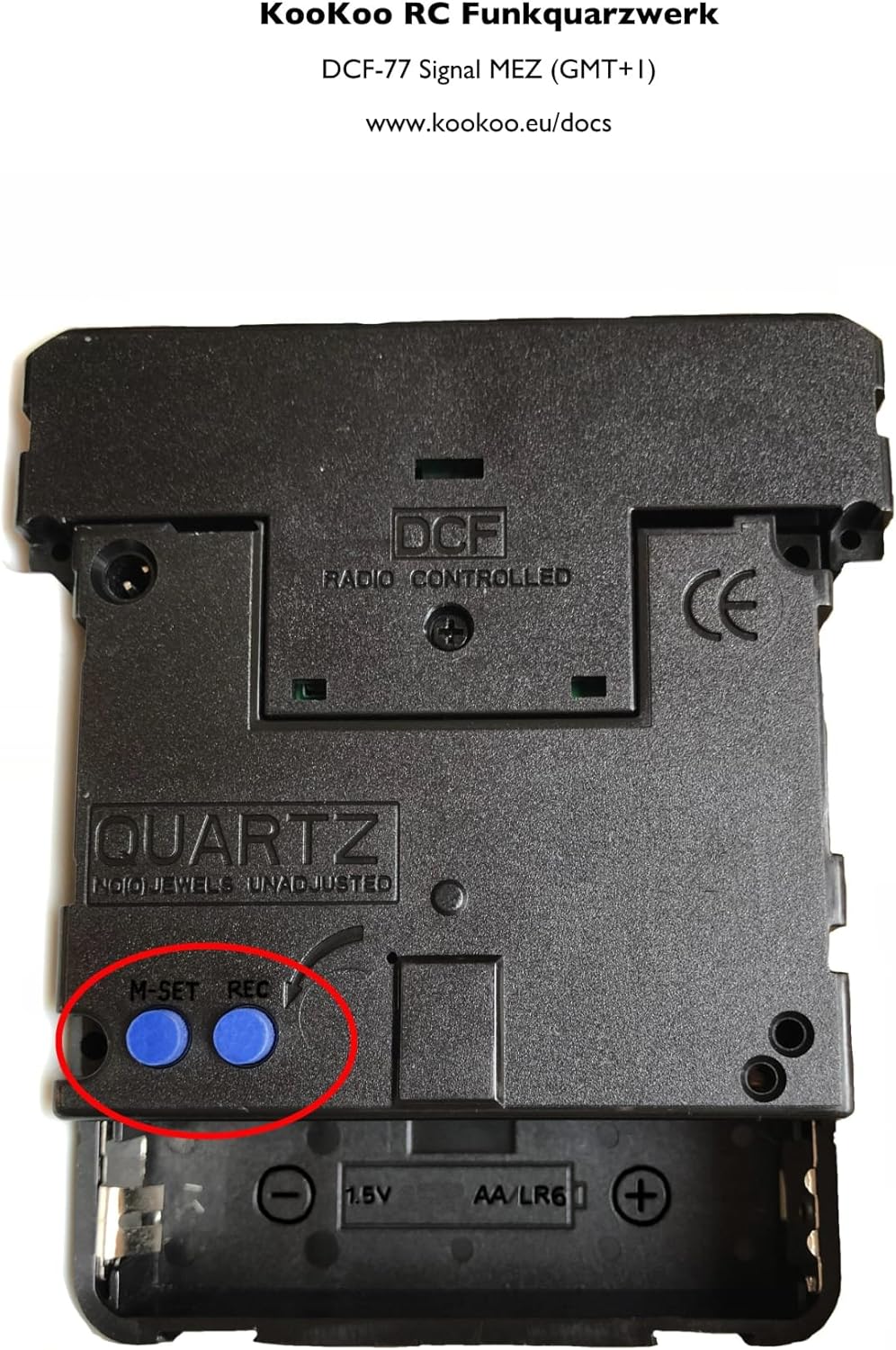 - RC-Funkquarzwerk (MEZ), der Zeitzeichensender DCF77 sendet die MEZ im Sekundentakt - das Empfangen des Zeitzeichens kann nicht abgeschaltet werden.
