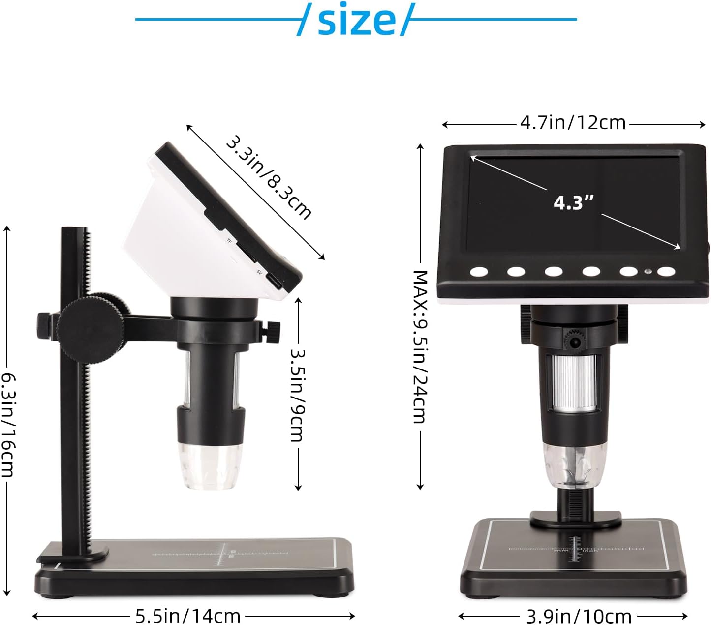 • [4,3 Zoll HD Bildschirm & PC anschliessen] Ausgestattet mit einem 4,3-Zoll-HD-IPS-Bildschirm, Bietet klarere Farben und Details als herkömmliche LCD-Displays. 50-1000fache kontinuierliche Verstärkung. Stromversorgung über wiederaufladbaren