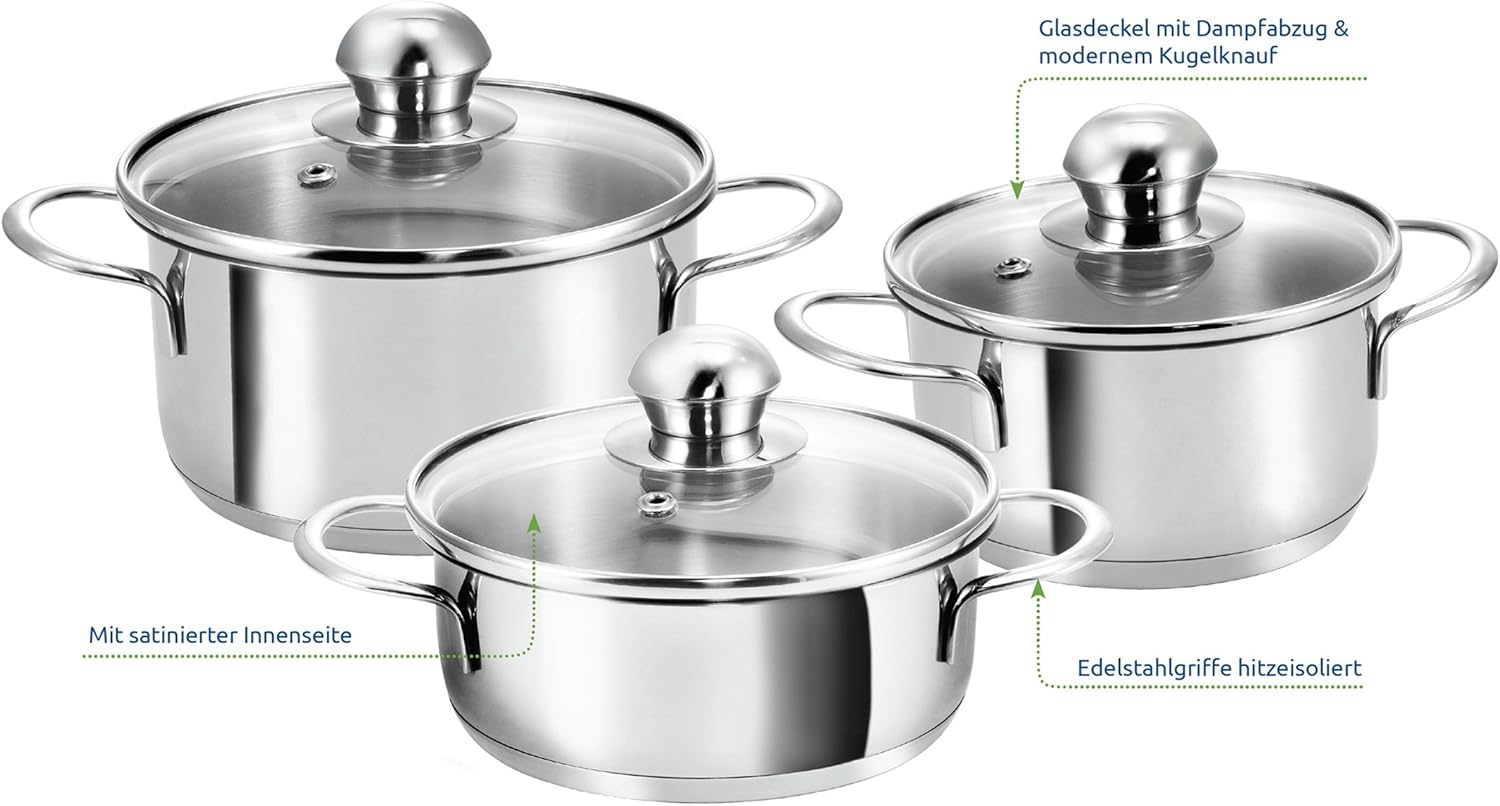 - Eigenschaften: Alle Töpfe mit praktischem Abgiessrand und satinierter Innenseite