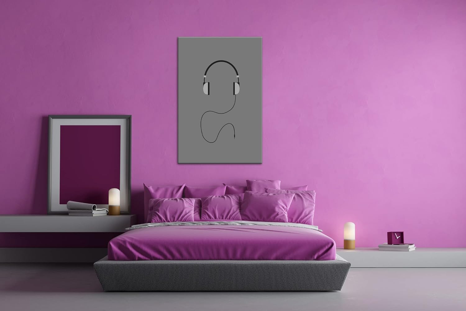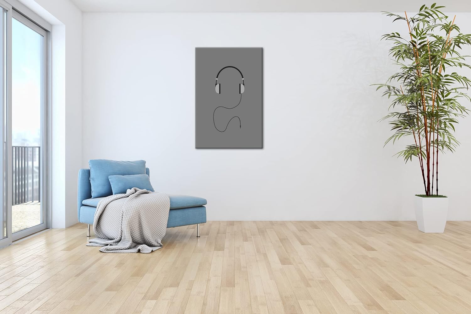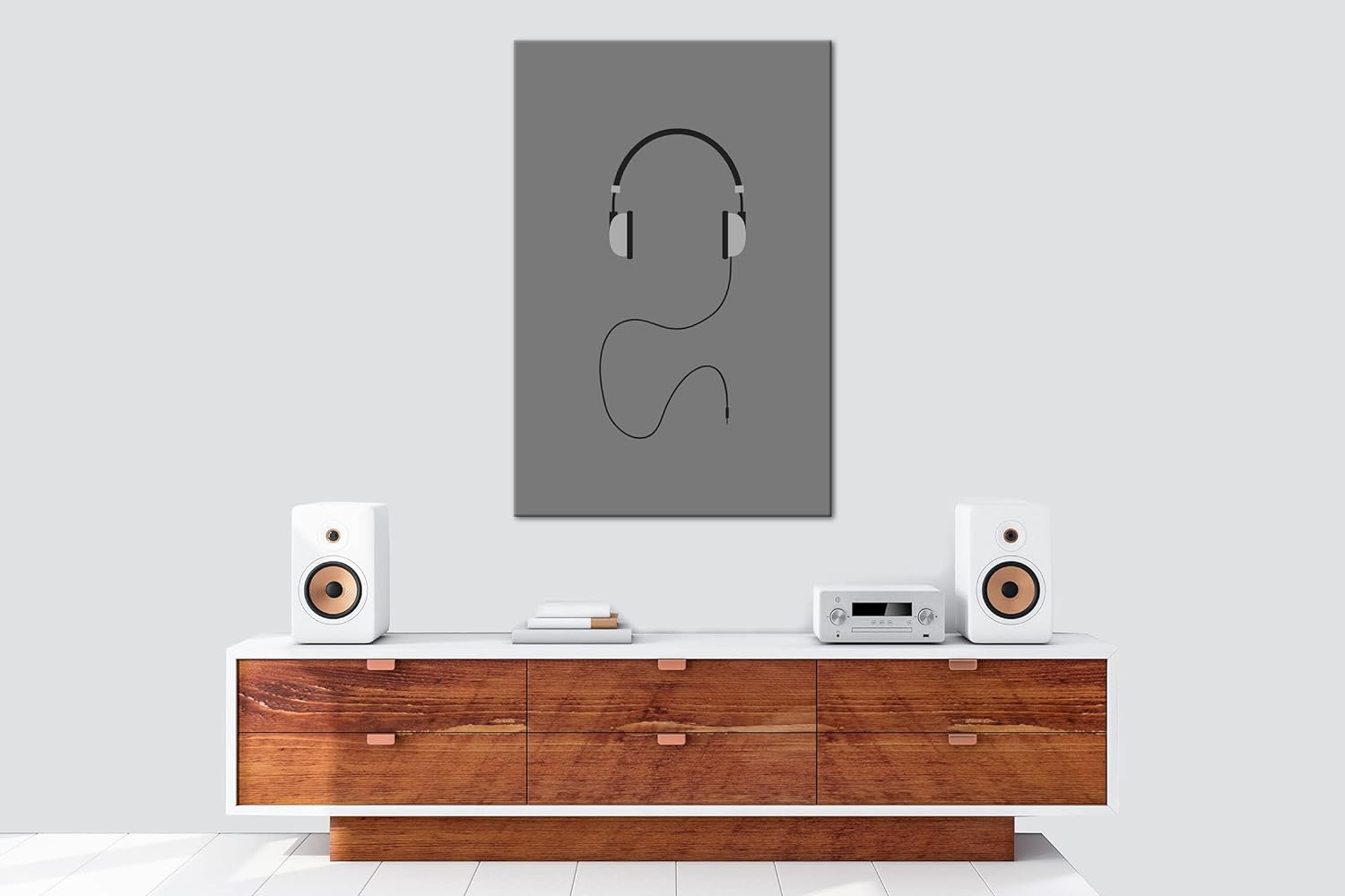 deyoli Kopfhörer Logo Format: 80x60 Effekt: Schwarz&Weiss als Leinwandbild, Motiv fertig gerahmt auf