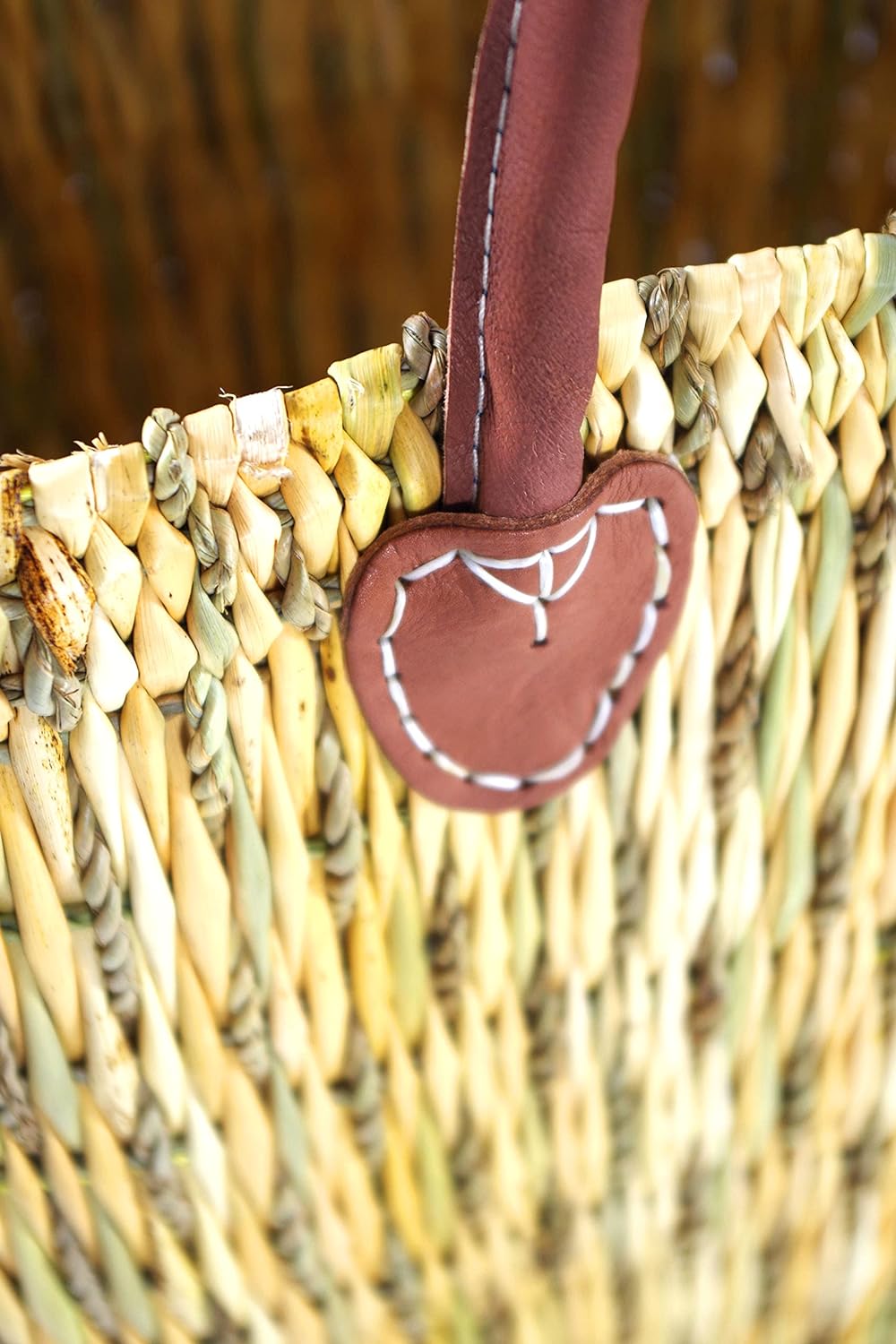 PRODUKTBESCHREIBUNGEN Seegrastasche aus Nordafrika von Kobolo. In Handarbeit aus Seegras hergestellt, mit handschmeichelnden Echtledergriffen versehen. Als klassischer Shopper oder auch als Badetasche zu verwenden. Da es sich um ein in handarbeit hergestelltes Produkt aus Naturmaterialien handelt, kann es in Form, Farbe und Grösse variiren und von der fotografischen Darstellung abweichen. Länge 42cm x Breite 20cm x Höhe 31cm