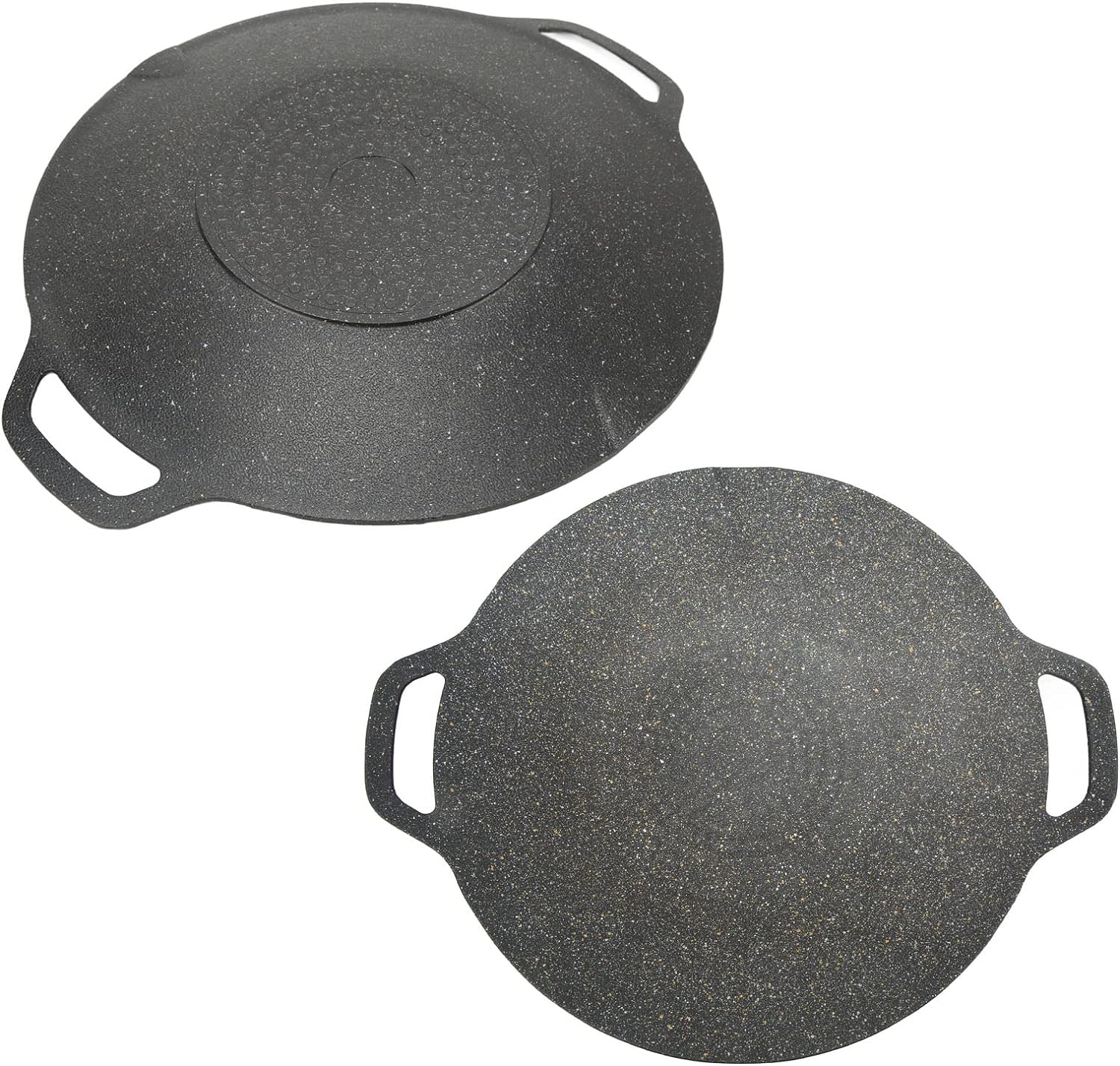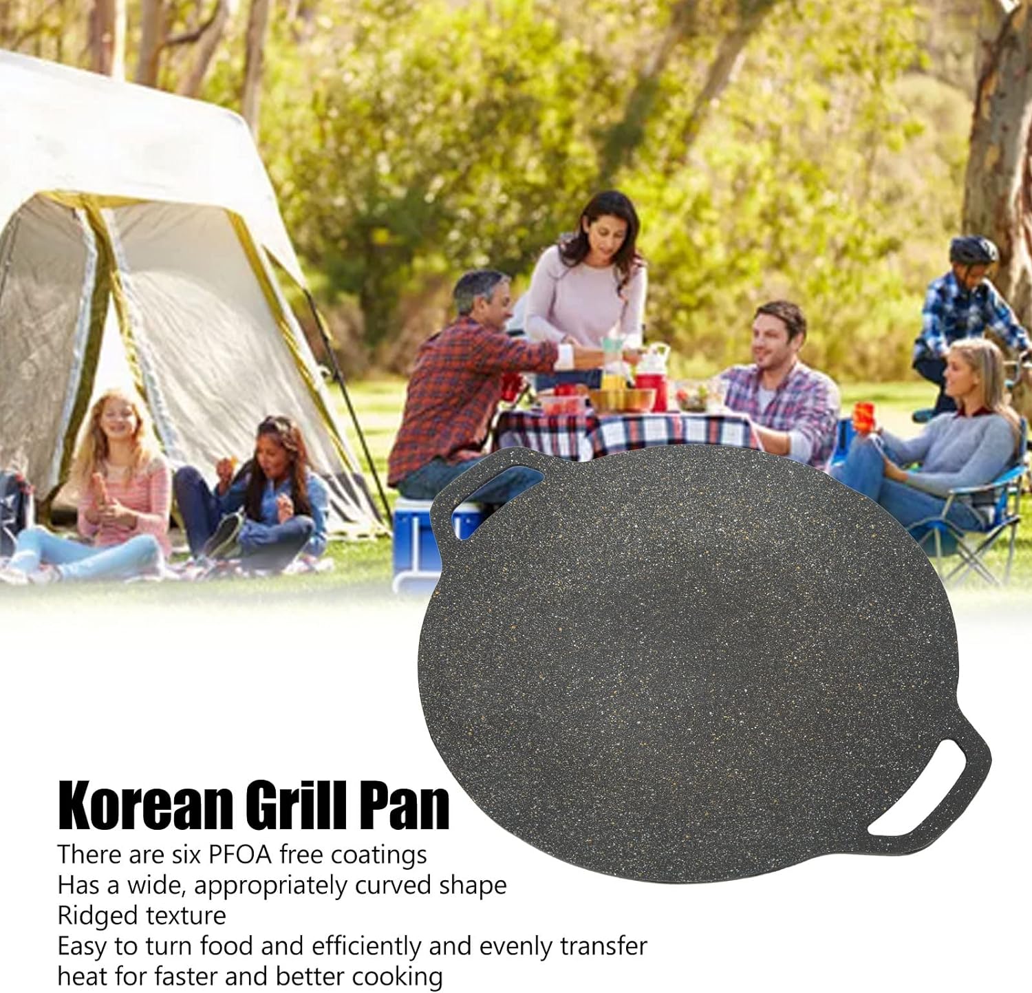 - Schnelles und gleichmässiges Garen: Die koreanische Grillpfanne hat eine breite, entsprechend geschwungene Form und eine kratzfeste Antihaftbeschichtung mit geriffelter Textur, die das Wenden von Speisen erleichtert und die Wärme effizient und