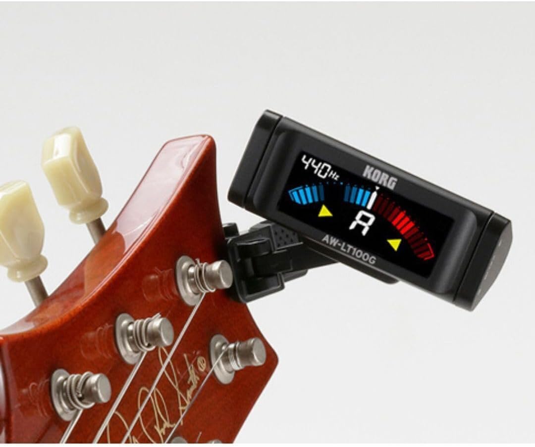 - KORG AW-LT100-G - Sowohl Klammerclip als auch Stimmfunktionen sind perfekt für Ihre Gitarre geeignet. Die Stimmempfindlichkeit des chromatischen Clip-Tuners fokussiert die wichtigsten Aspekte der Gitarrenstimmung, sodass die Tonhöhe der Saiten schnell