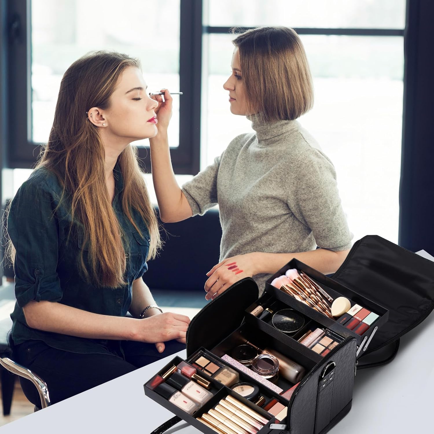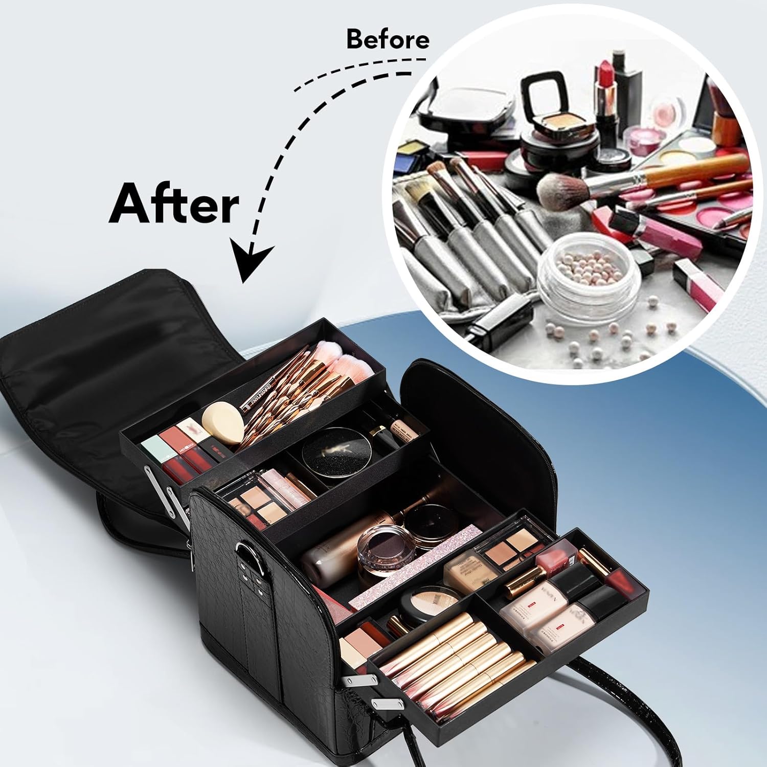 - Hochwertiges Material Kosmetikkoffer- Wasserdichtes Krokodil PU Leder, die modisch und elegant ist. Das PU Lederfutter ist leicht zu reinigen und leicht zu berühren, nur einfaches Wischen notwendig, wenn Kräfte auf die Pinsel oder Cremes versehentlich