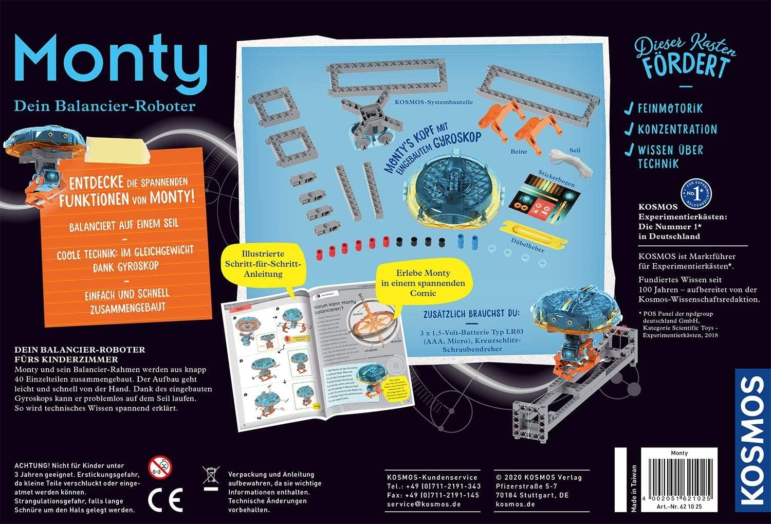 KOSMOS 621025 Monty - Dein Balancier-Roboter, Entdecke wie ein Gyoroskop funktioniert, lass Monty au