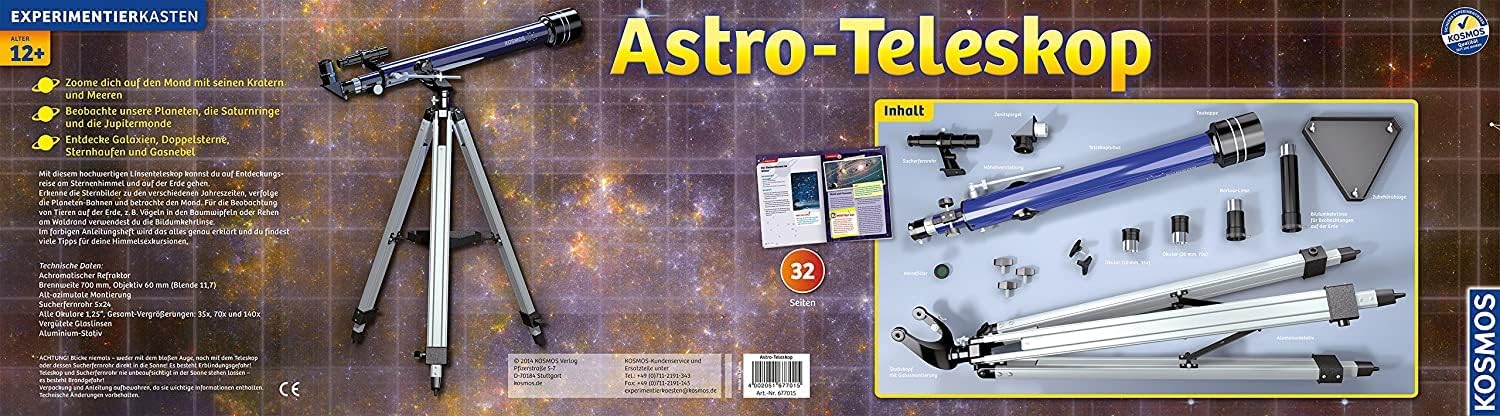 - Hochwertiges Refraktor-Teleskop 60/700 mm mit Glaslinsen und vergüteter Optik in wissenschaftlicher Qualität