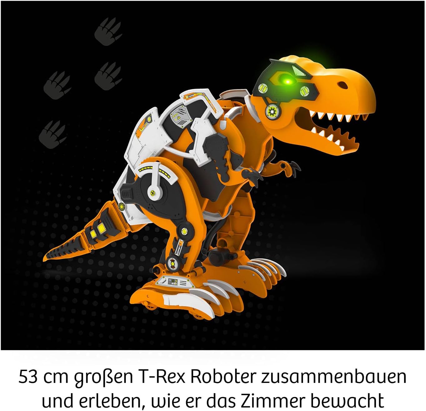 - Der gigantische Rex ist 53 cm lang, 28 cm hoch und hat zwei Motoren, die Beine, Arme und Maul antreiben – die Kinder steuern ihn mit Fernbedienung oder programmieren bis zu 50 Aktionen