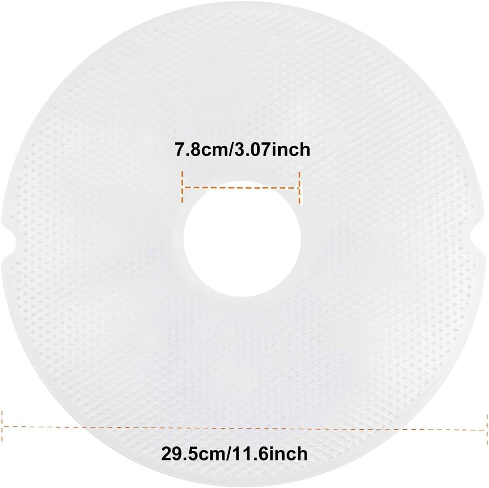- DIE RICHTIGE GRÖSSE: Diese Packung mit 6 Dörrtüchern hat einen Durchmesser von 11,6 Zoll und eine Dicke von 0,15 Zoll, wodurch sie für die meisten Lebensmitteltrockner geeignet ist. Bitte überprüfen Sie die Grösse vor dem Kauf.