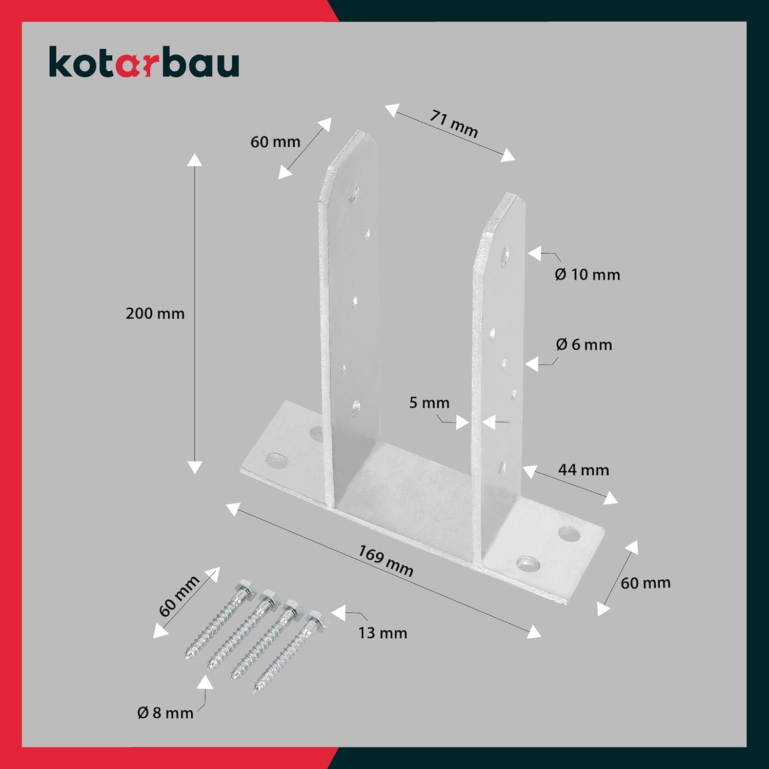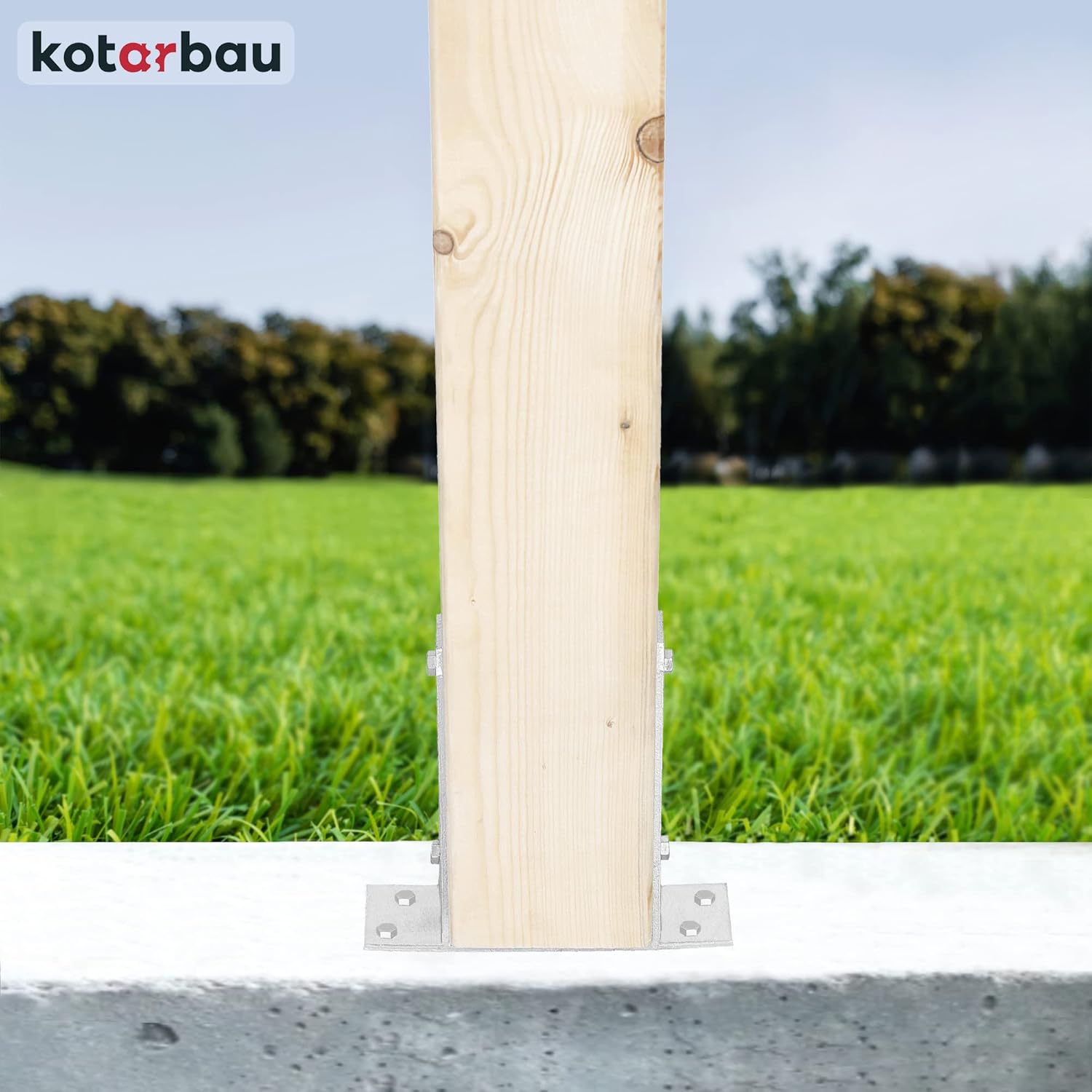 - WIDERSTANDSFÄHIGKEIT – Der U Pfostenträger zum Aufschrauben von KOTARBAU zeichnet sich durch seine hohe Qualität aus. Die Wahl von Materialien, aus denen er gefertigt wird, gewährleistet eine lange Lebensdauer der Aufschraubhülse. Der Stützenfuss