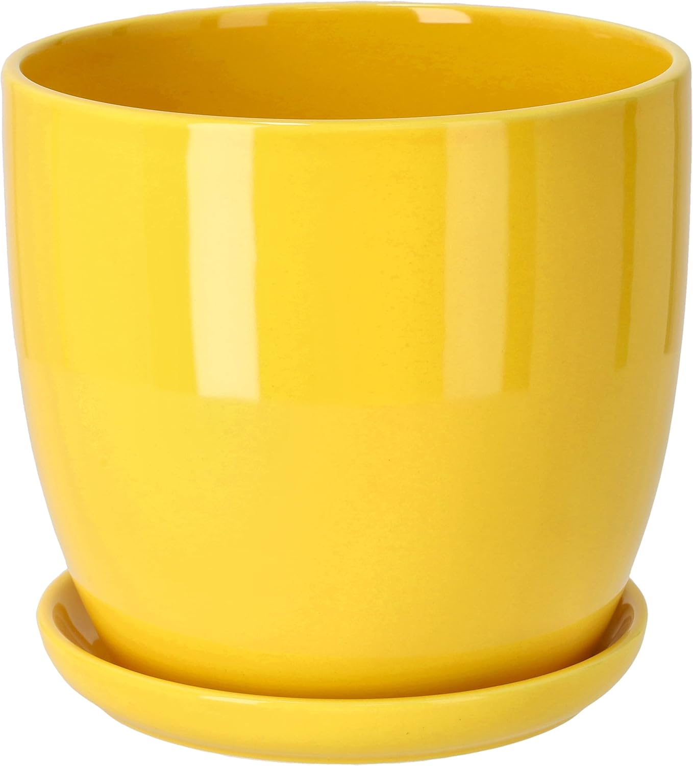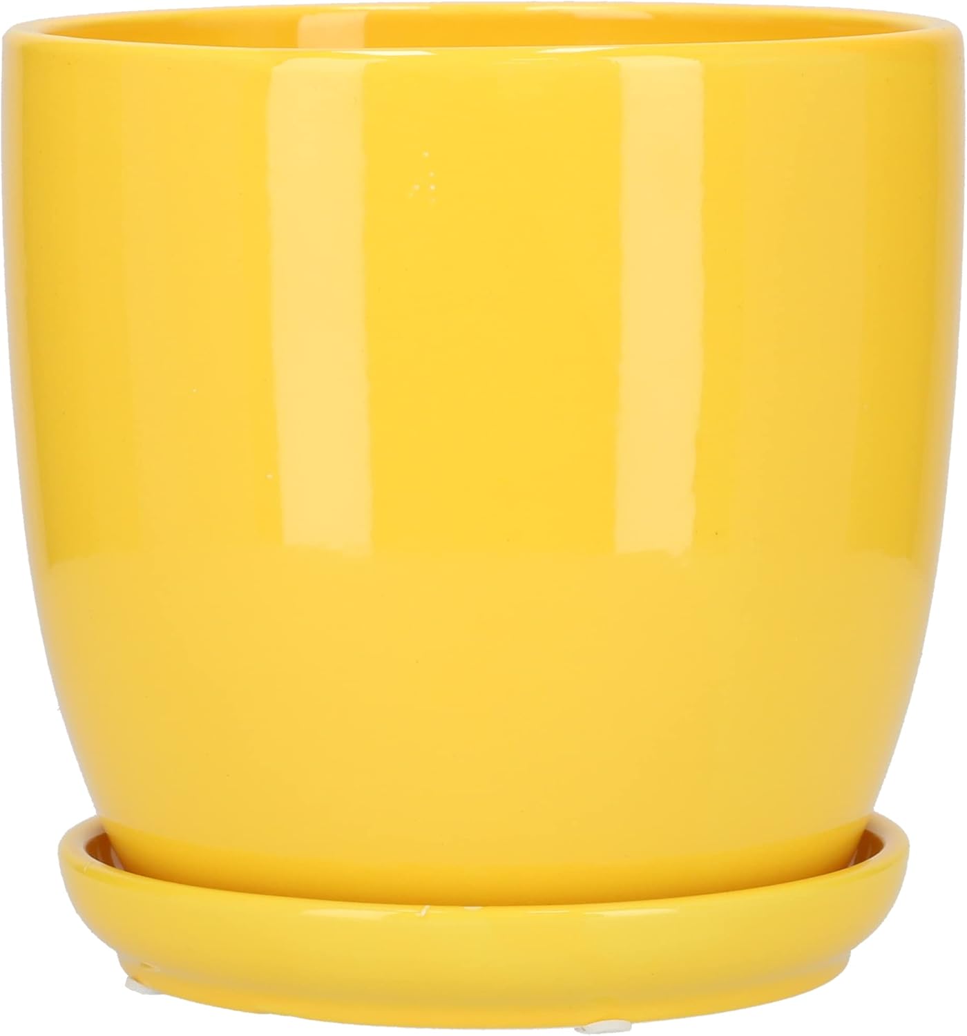- TECHNISCHE DATEN - Blumentopf Gelb 13 cm – Höhe: 120 mm, Wandstärke: 6 mm, Durchmesser: 120 mm, Höhe der Tropfschale: 20 mm, Durchmesser der Tropfschale: 128 mm, Farbe: Gelb, Material: glasierte Keramik, Gewicht: 618 g