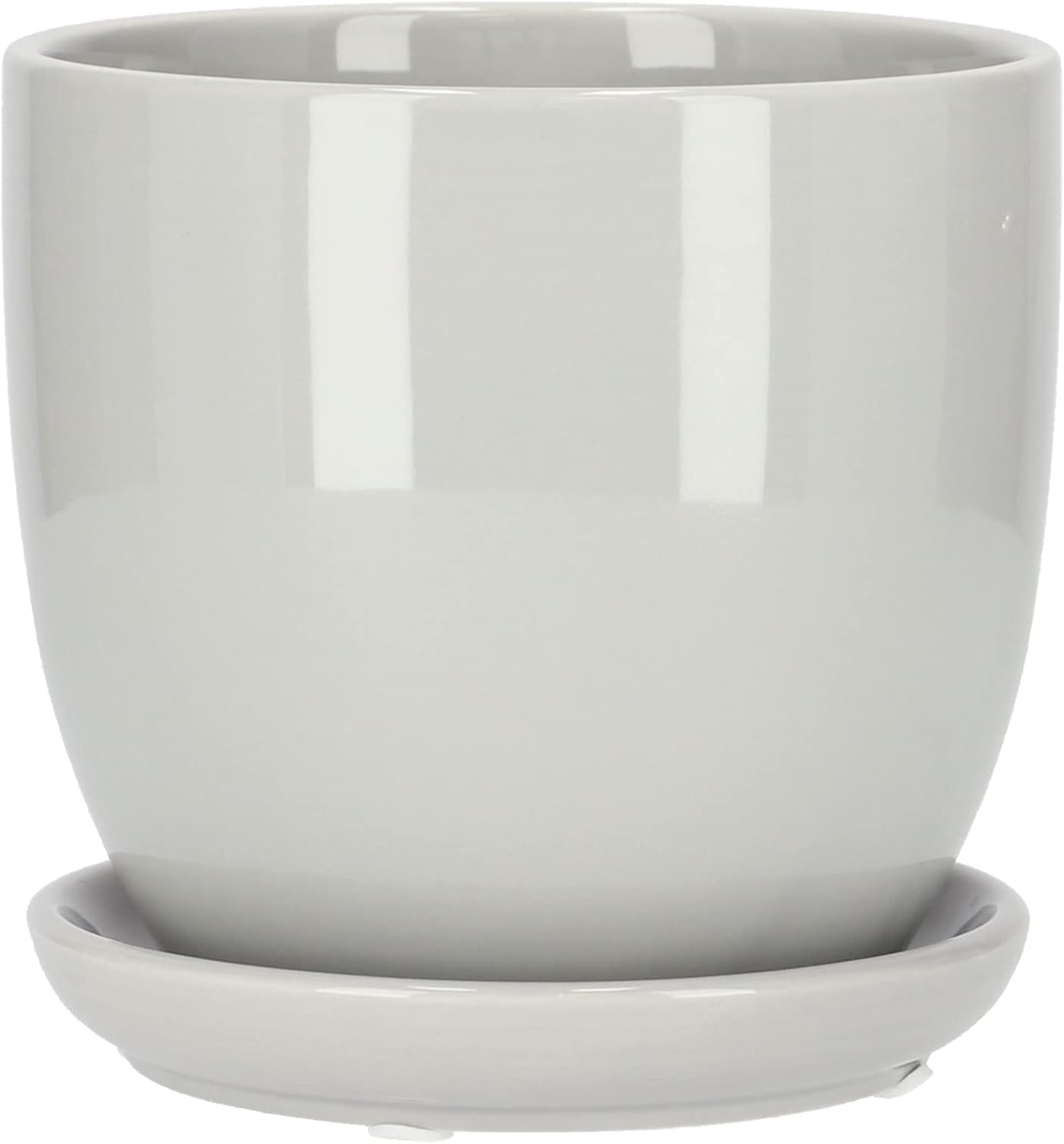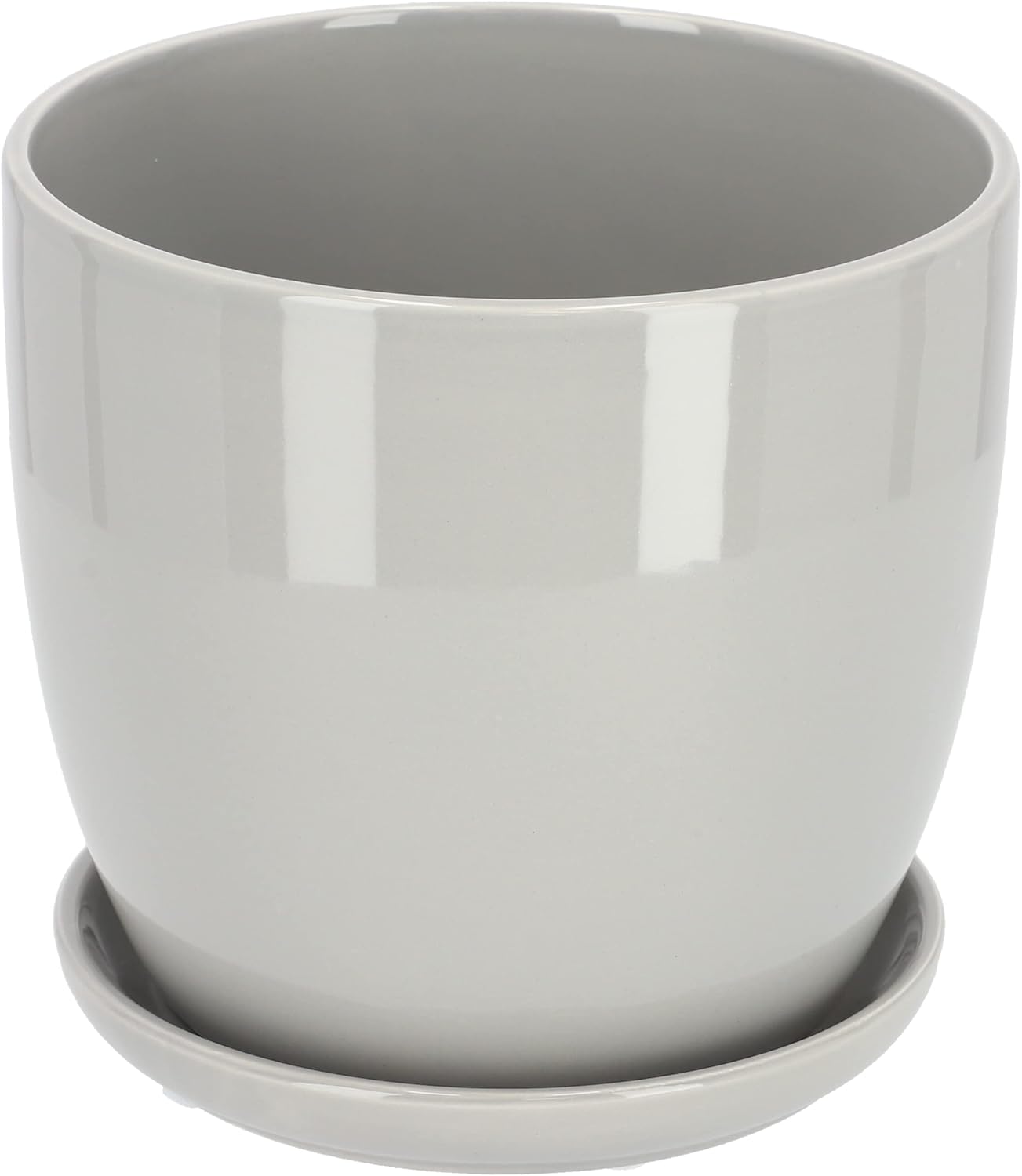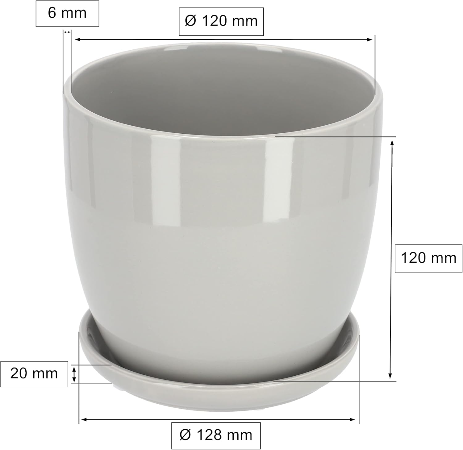 - TECHNISCHE DATEN - Blumentopf Grau 13 cm – Höhe: 120 mm, Wandstärke: 6 mm, Durchmesser: 120 mm, Höhe der Tropfschale: 20 mm, Durchmesser der Tropfschale: 128 mm, Farbe: Grau, Material: glasierte Keramik, Gewicht: 610 g