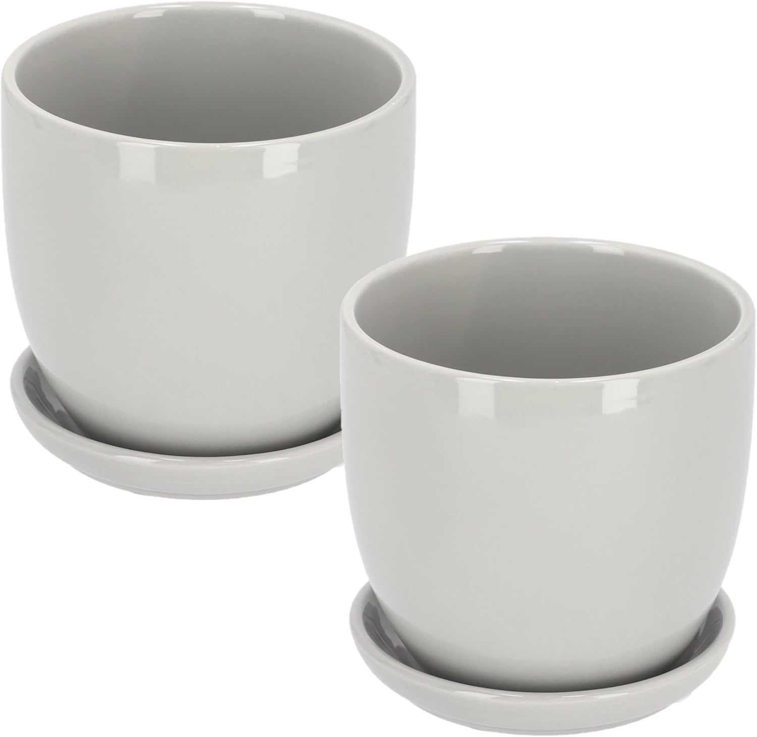 KOTARBAU® 2er Set Keramik Blumentopf Übertopf für Blumen Pflanzen ⌀ 20 cm mit Tropfschale Grau ⌀ 20