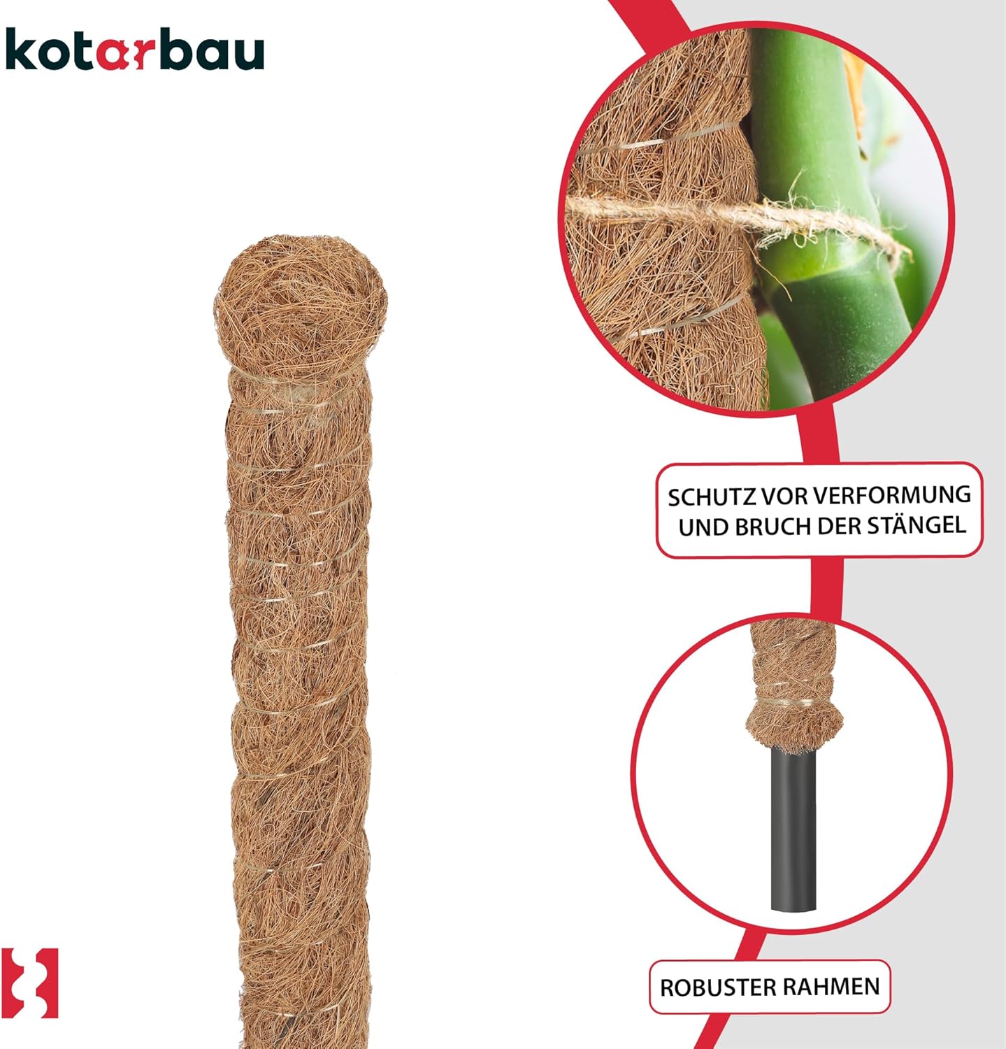 - STILVOLLER PFLANZSTAB KOKOS | Der Rankhilfe Moosstab / Kokos Rankstab erfüllt nicht nur seine praktische Funktion, sondern verschönert den Raum auch mit seinem ungewöhnlichen Design. Die braune Farbe fügt sich perfekt in die Pflanzenatmosphäre ein.