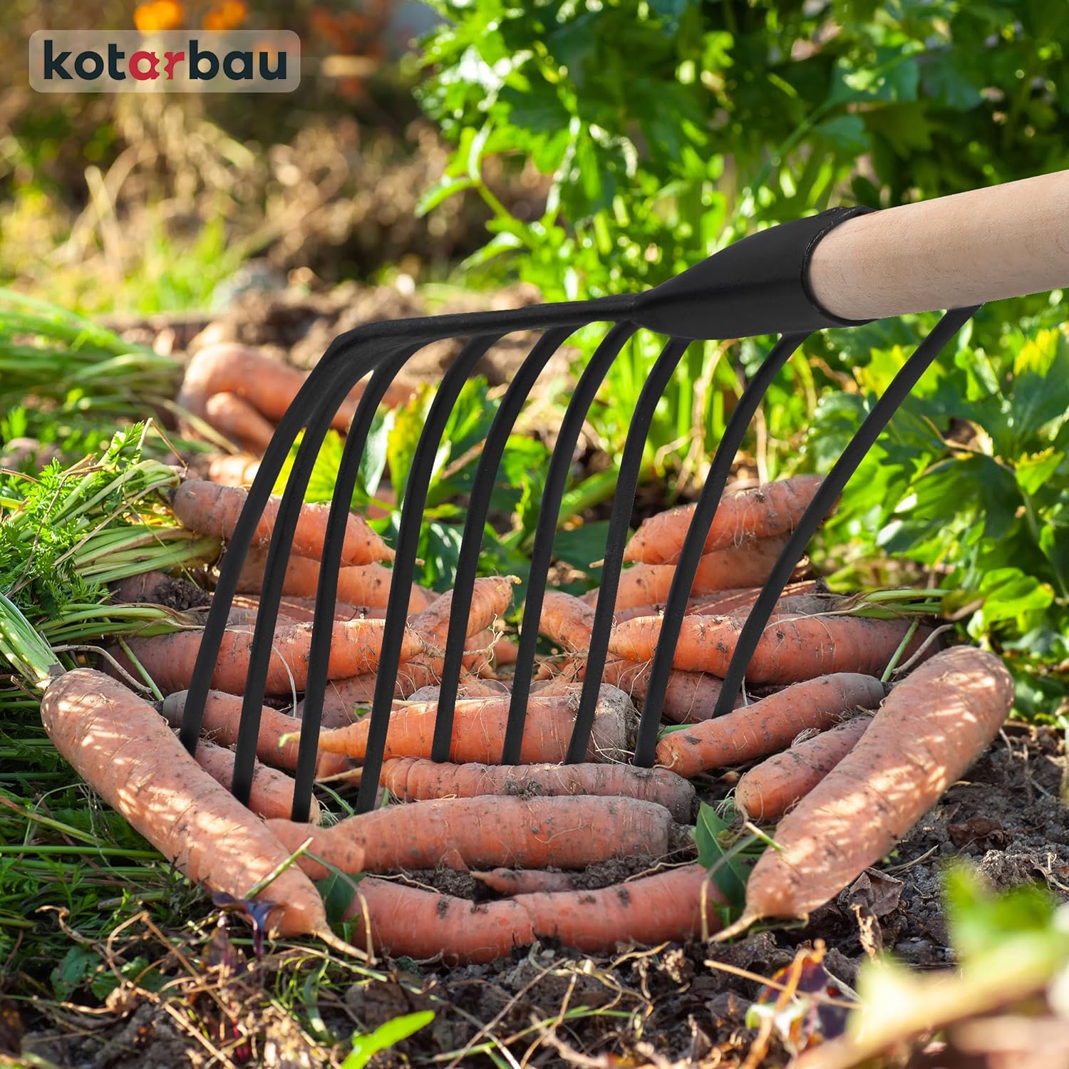 - HALTBARKEIT – Die KOTARBAU 9 Zinken Forke ist ein weit verbreitetes Werkzeug, die in vielen Haushalten verwendet wird. Gartengabeln sind für ihre Robustheit bekannt, da sie aus Stahl hergestellt werden, der gegen Korrosion beständig ist. Sie werden rund um das Jahr für verschiedene Arten von Gartenarbeiten und in der Landwirtschaft eingesetzt. Die langen und scharfen Zinken erleichtern die Aufnahme von Gegenständen, was die Arbeit wesentlich beschleunigt.