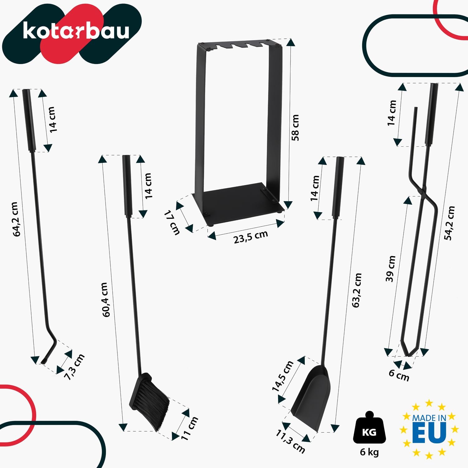 - DIE RICHTIGE VORBEREITUNG DES KAMINS IST MIT DEM KOTARBAU OFENBESTECK SICHER UND EINFACH. Hier finden Sie alle Werkzeuge, die Sie zum Reinigen des Kamins benötigen - einen Schürhaken, einen Besen, eine Zange und eine Kohlenschaufel. Das Set erleichtert