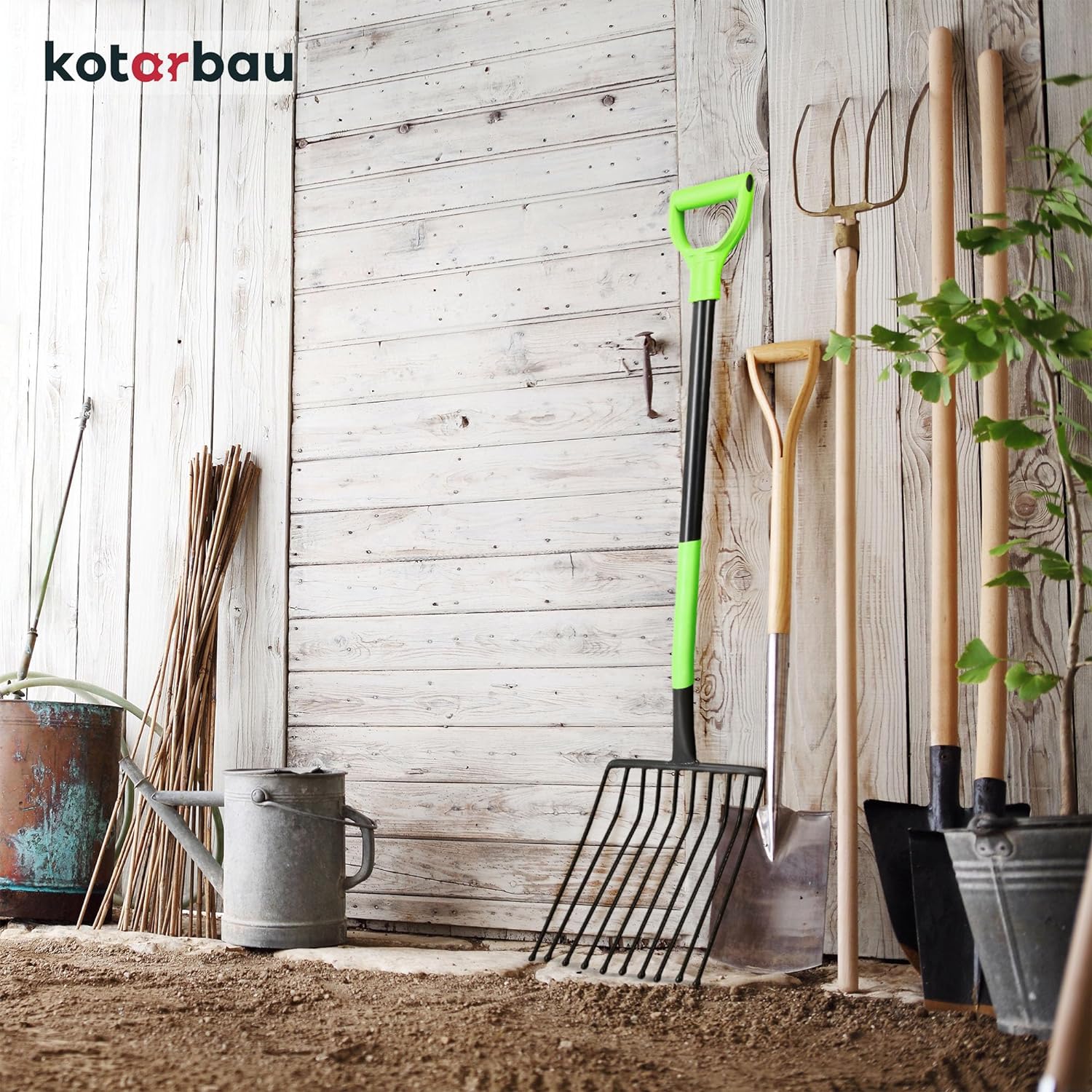 • VIELSEITIGKEIT – Die KOTARBAU Mistgabel werden in Haushalten und auf Bauernhöfen verwendet. Sie sind nützlich bei der Arbeit im Garten und im Feld. Sie helfen Ihnen beim Transportieren von Kartoffeln, Rüben, Steinen und Heu. Der Griff hat ein D-förmiges Ende, an dem Sie die Gabel in der Scheune oder Garage aufzuhängen können.