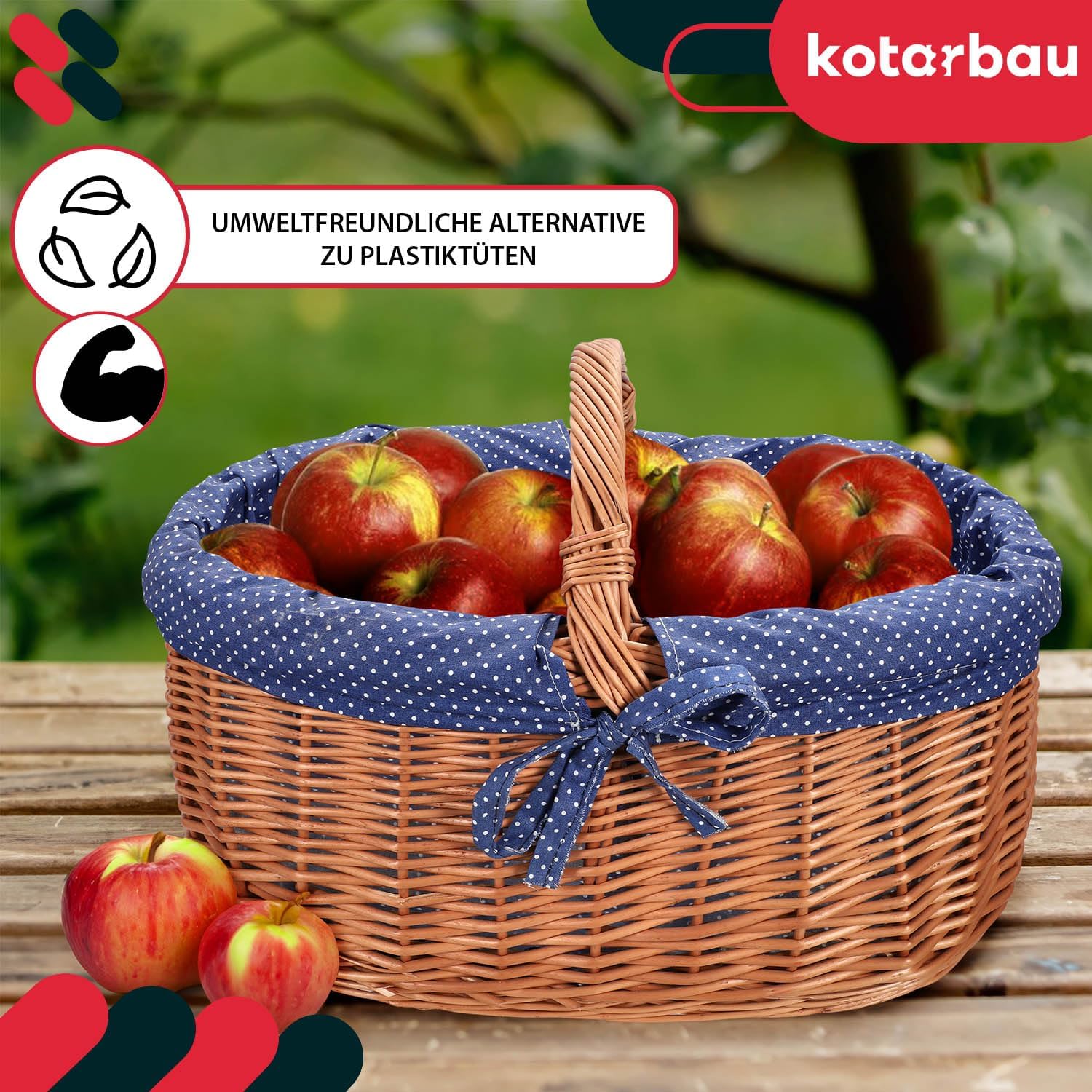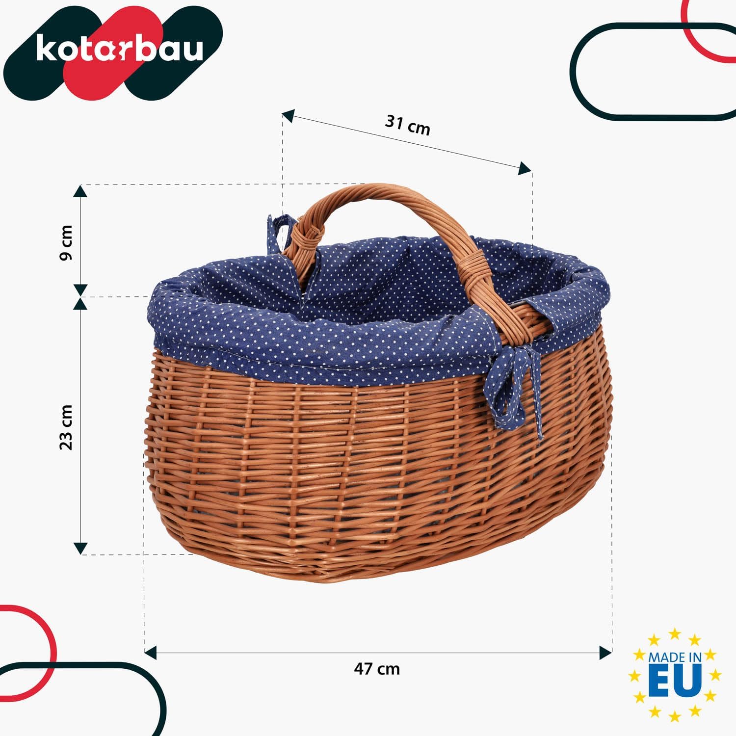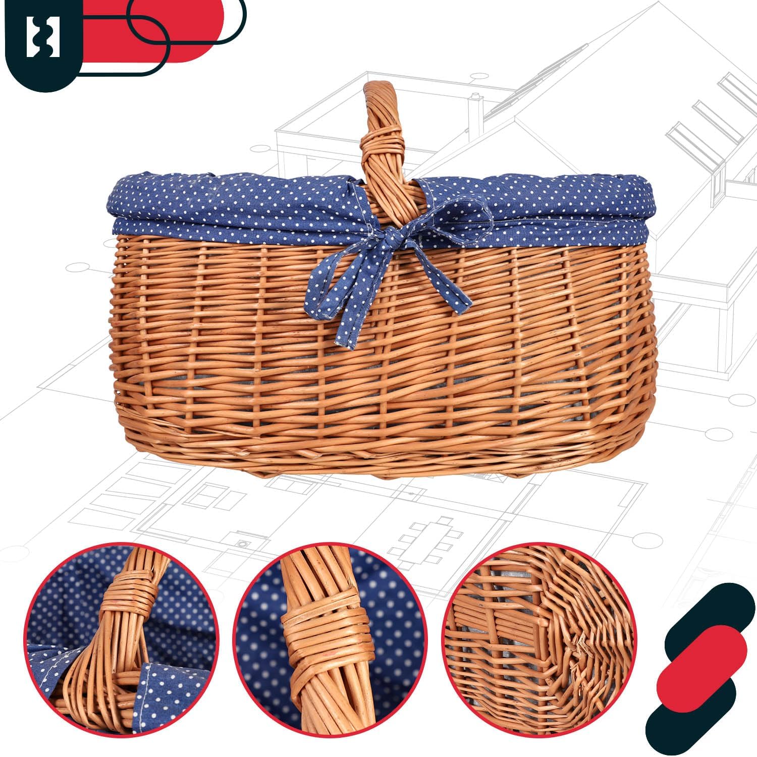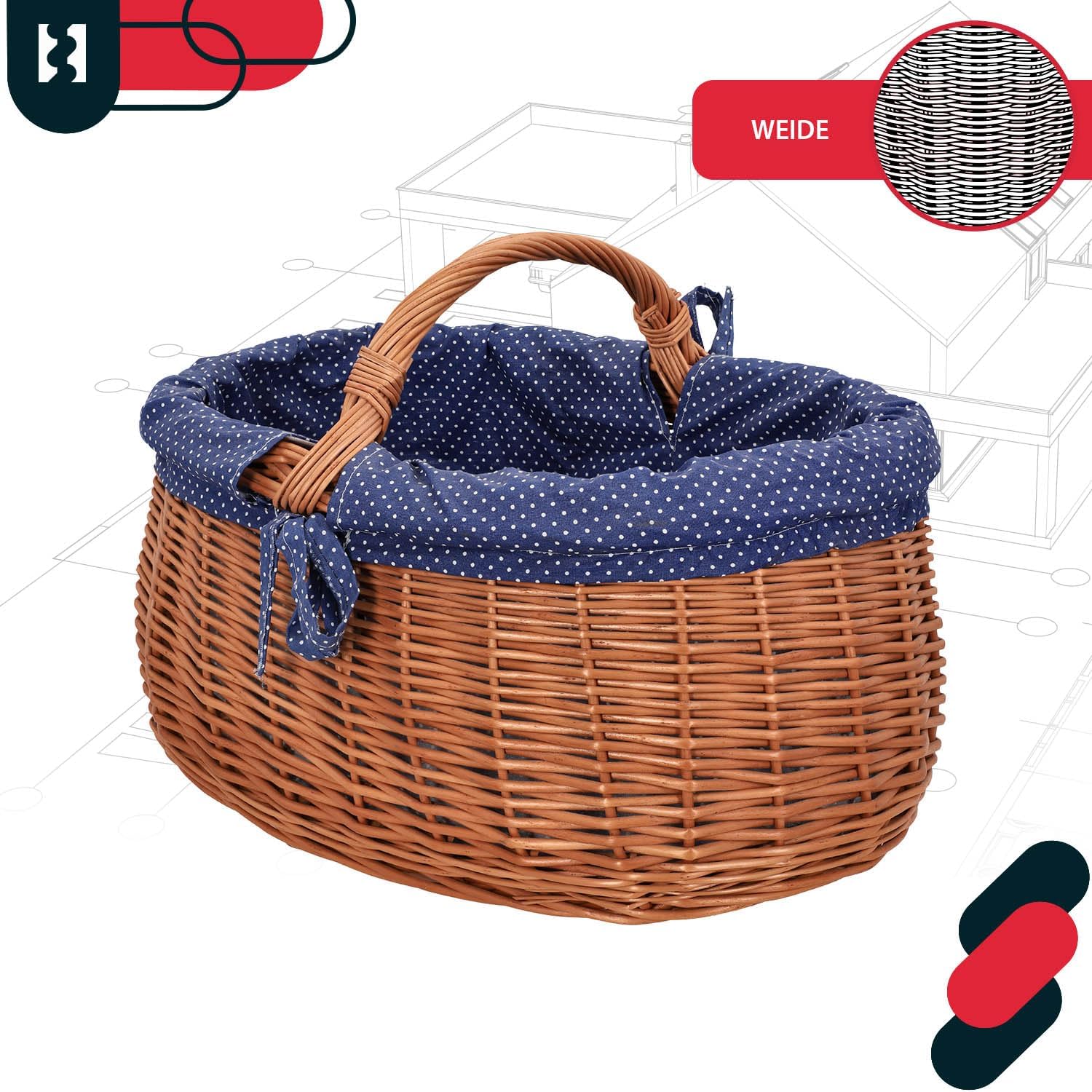 - ELEGANT | Der Einkaufskorb Weide mit blauer Stoffeinlage sieht elegant und stilvoll aus – ein sofortiger Blickfang. Die farbenfrohe blaue Stoffeinlage bietet einen attraktiven Kontrast und macht den Weinkorb sowohl praktisch als auch dekorativ.