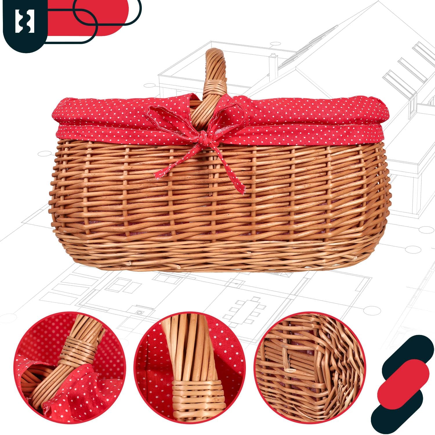 - ELEGANT | Der Einkaufskorb Weide mit roter Stoffeinlage sieht elegant und stilvoll aus – ein sofortiger Blickfang. Die farbenfrohe rote Stoffeinlage bietet einen attraktiven Kontrast und macht den Weinkorb sowohl praktisch als auch dekorativ.