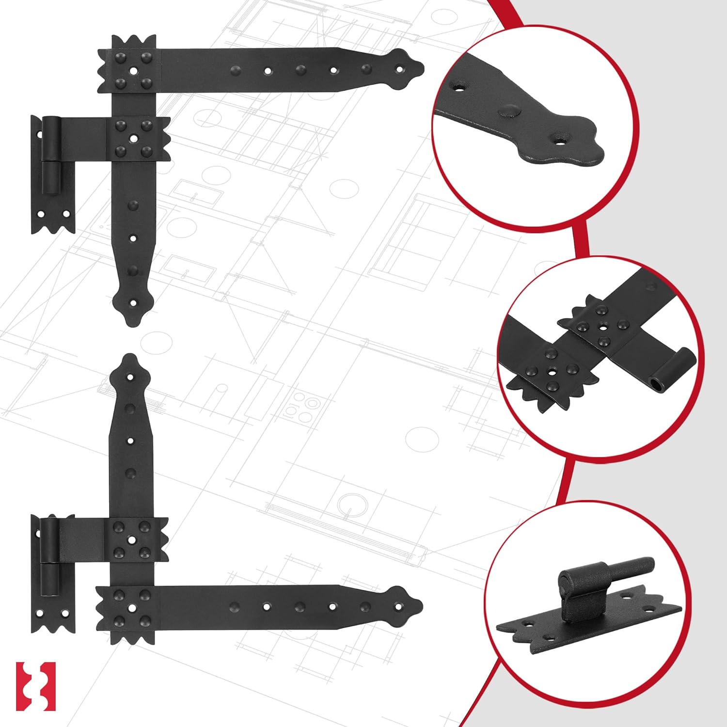- UNIVERSALITÄT – Die Türbänder-Schmiedeeisen eignen sich zur Montage auf vielen Materialien: Holz, Metall, Ziegel. Das Produkt zeichnet sich durch einen bereiten Einsatzbereich aus. Die Winkelbänder werden vor allem zur Montage von Fensterläden