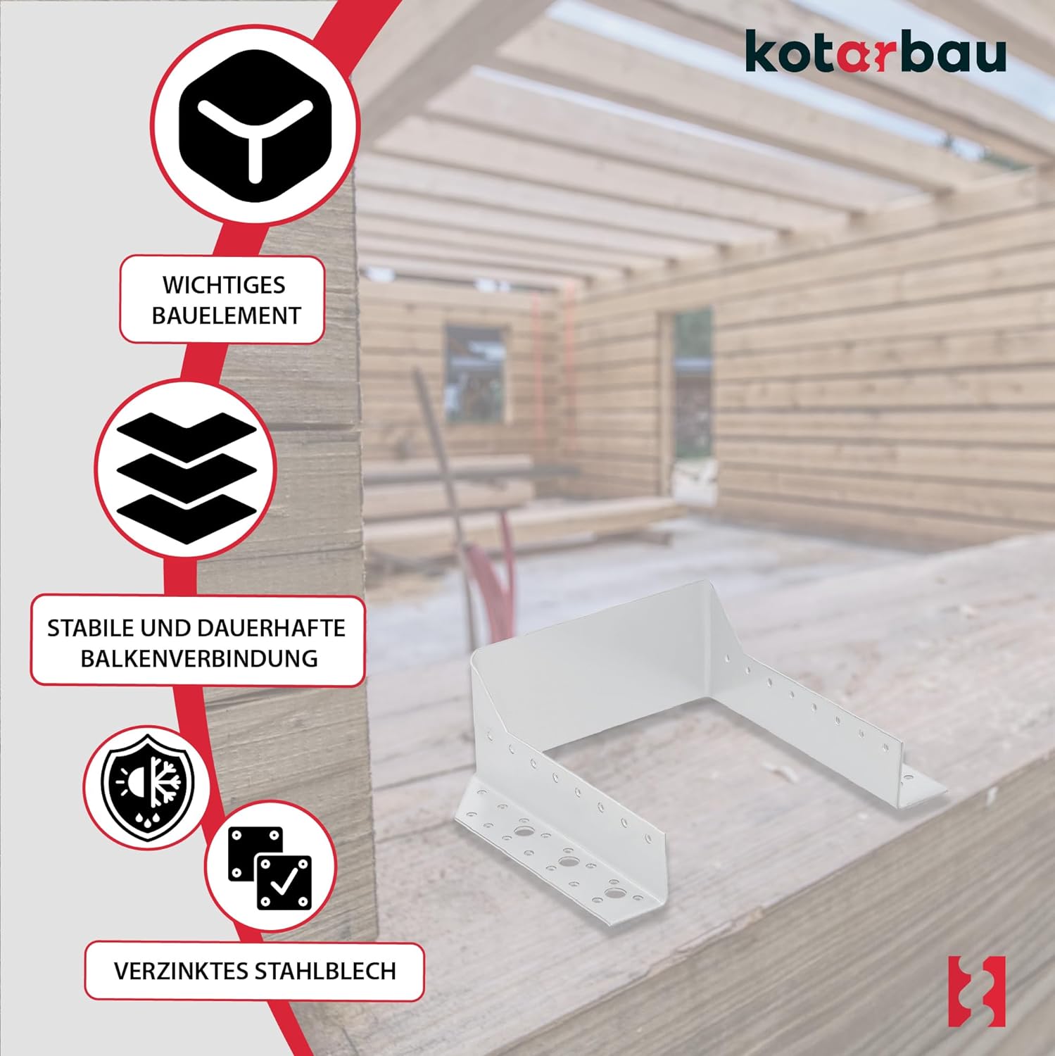 - LANGJÄHRIGE NUTZUNG – Der KOTARBAU Balkenverbinder besteht aus verzinktem Stahlblech, der den Balken schützt, nicht rostet und gegen Witterungseinflüsse, Feuchtigkeit, Stösse und Belastungen beständig ist. Der Holzbalkenverbinder ist auch