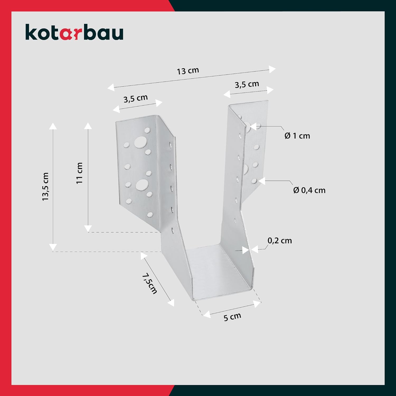 - LANGJÄHRIGE NUTZUNG – Der KOTARBAU Balkenverbinder besteht aus verzinktem Stahlblech, der den Balken schützt, nicht rostet und gegen Witterungseinflüsse, Feuchtigkeit, Stösse und Belastungen beständig ist. Der Holzbalkenverbinder ist auch