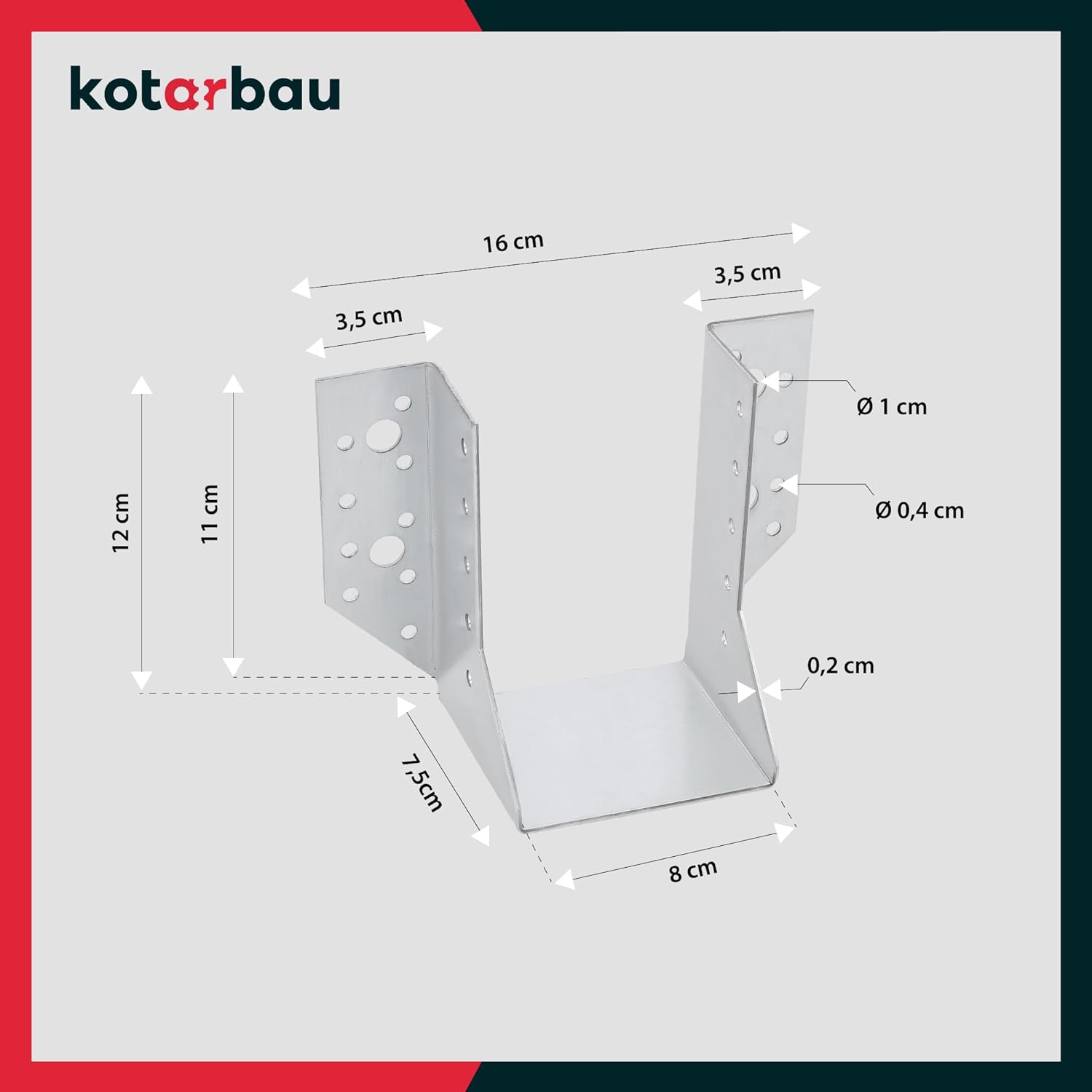 - LANGJÄHRIGE NUTZUNG – Der KOTARBAU Balkenverbinder besteht aus verzinktem Stahlblech, der den Balken schützt, nicht rostet und gegen Witterungseinflüsse, Feuchtigkeit, Stösse und Belastungen beständig ist. Der Holzbalkenverbinder ist auch