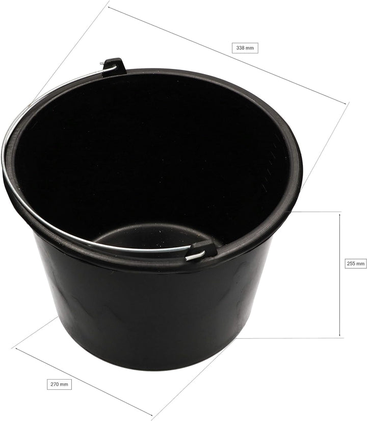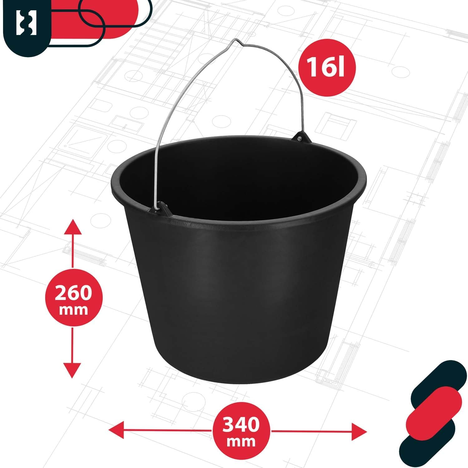 - TECHNISCHE DATEN – Eimer 16 l – Fassungsvermögen: 16 l, Durchmesser: 338 mm, Höhe: 255 mm, Durchmesser Boden: 270 mm, Durchmesser Boden: 627 g, Material: Kunststoff, Material Griff: Metall, Farbe: Schwarz