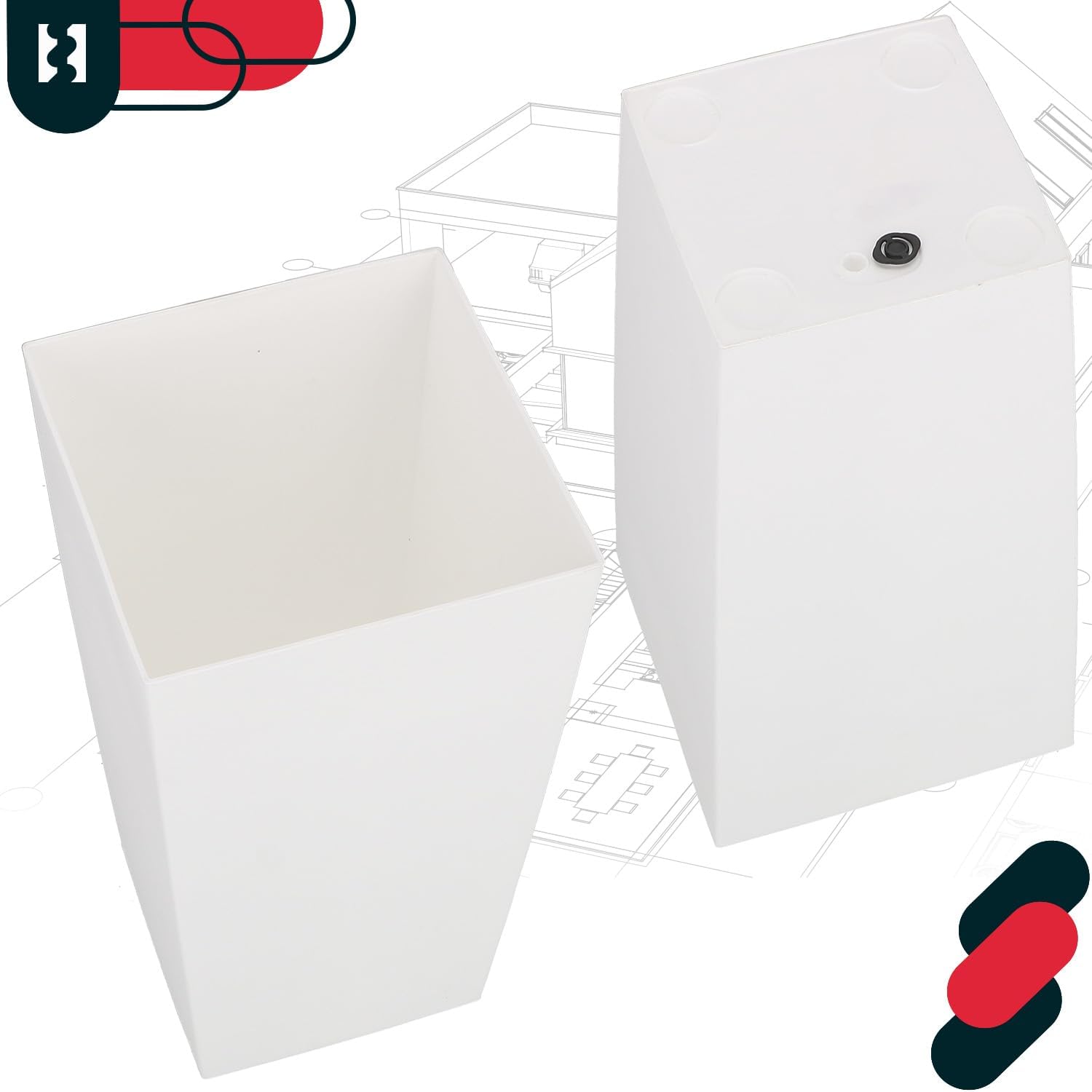 - TECHNISCHE DATEN – Blumentopf 265x265x500 – Höhe Übertopf: 500 mm, Wandlänge Unterkante Übertopf: 200 mm, Wandlänge Oberkante Übertopf: 265 mm, Farbe: Weiss, Innentopf: 240x240x205 mm, Gewicht: 1,710 kg