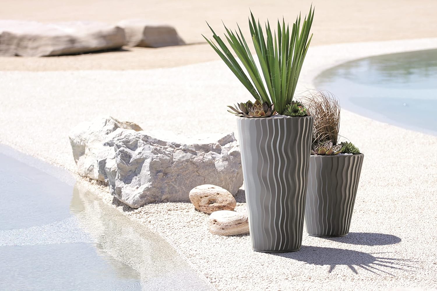 - FUNKTIONALITÄT – Der KOTARBAU Pflanztopf ist für die Bepflanzung mit Blumen und Kräutern bestimmt. Er hat sanft gewellte vertikale Rillen, die dem Wüstensand nachempfunden sind. Zum Set gehört auch ein Innentopf mit speziellen Griffen, mit dem Sie