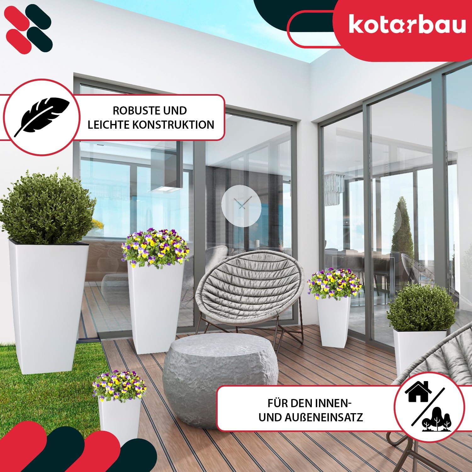 - HALTBARKEIT - Der hohe KOTARBAU Pflanzkübel ist aus qualitativ hochwertigem Kunststoff gefertigt, der Beständig gegen Witterungseinflüsse wie Frost und UV-Licht ist und Ihnen somit viele Jahre dienen wird. Der Blumenkübel kann sowohl im Innenbereich