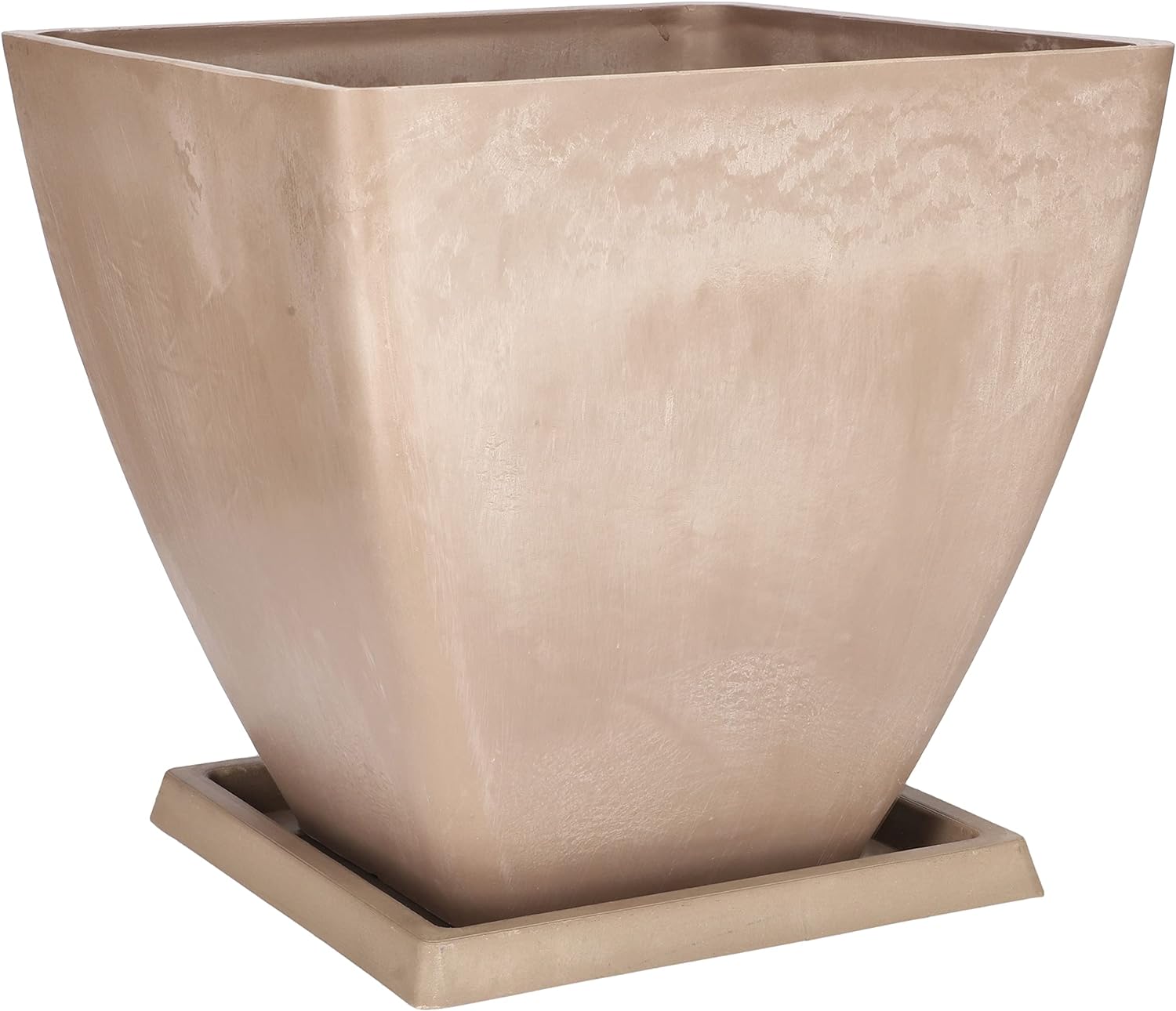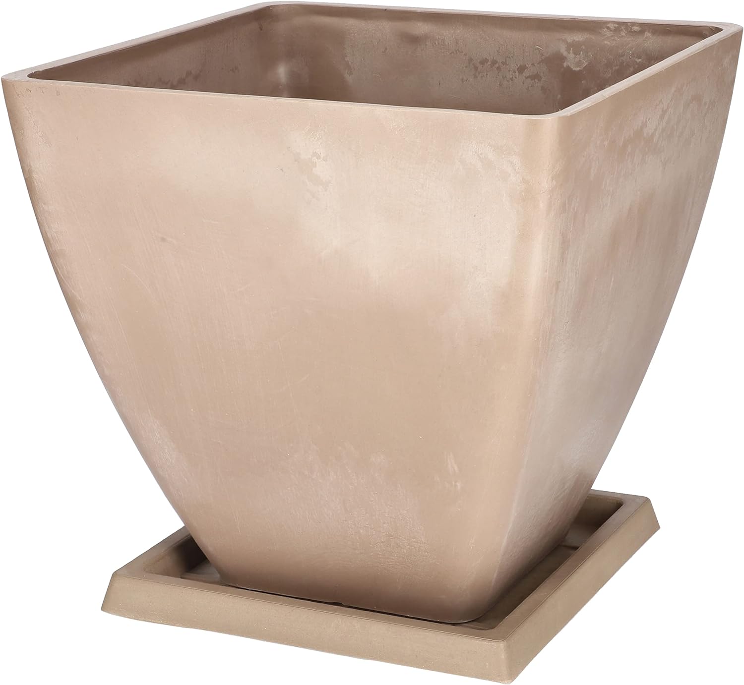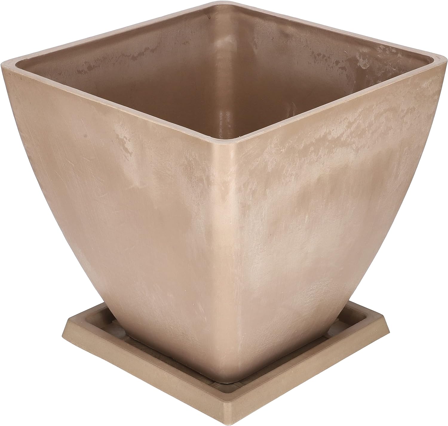 - 🌻 TECHNISCHE DATEN - Blumentöpfe aus recycelten Materialien: Holz, Stein und Kunststoff (60% Kunststoff + 30% Steinstaub + 10% Holzstaub) + hochwertiger Farbstoff. Untersetzer inklusive. Blumentopf in Taupe - Gewicht: 2,2 kg - Abmessungen - Breite: