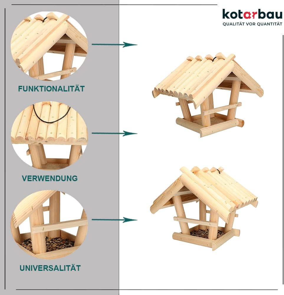 - 2in1 - MIT DEM HOCHWERTIGEN KOTARBAU VOGELHAUS ERHALTEN SIE VOGELFUTTER. Futterhäuschen sind für Vögel lebenswichtig, denn das Futter, das sie dort hinterlassen, hilft ihnen, schwierige Zeiten zu überstehen. Um den Vögeln die Futtersuche zu