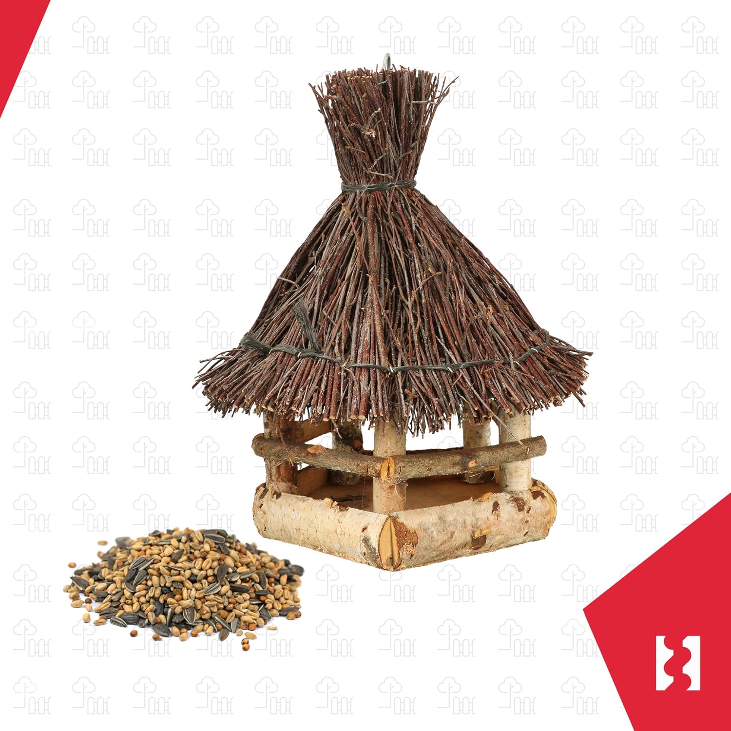 - TECHNISCHE DATEN - Höhe: 400 mm, Basisbreite: 240 mm, Dachdurchmesser: 330 mm, Dachhöhe: 280 mm, Material: Holz, Eigengewicht des Futterspenders: 2,090 kg, Gewicht der Futters: 0,5 kg