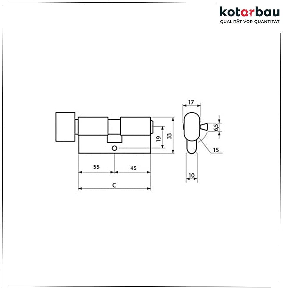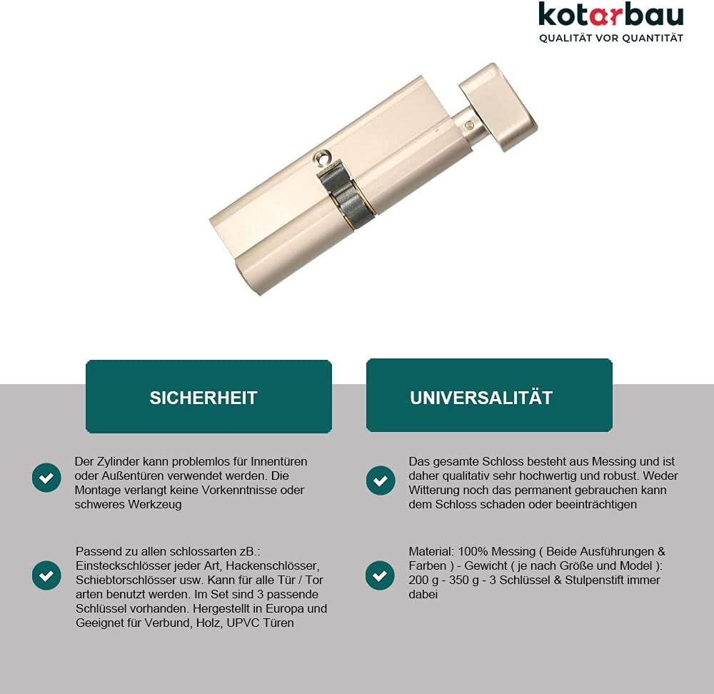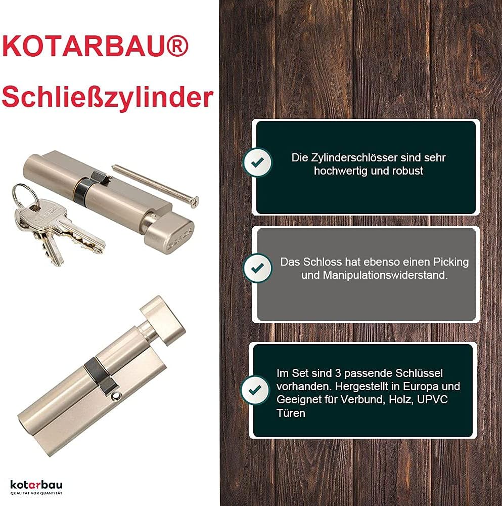 KOTARBAU Schliesszylinder 55/45 Nickel Mit Knauf Zylinderschloss Profilzylinder Türzylinder Schloss