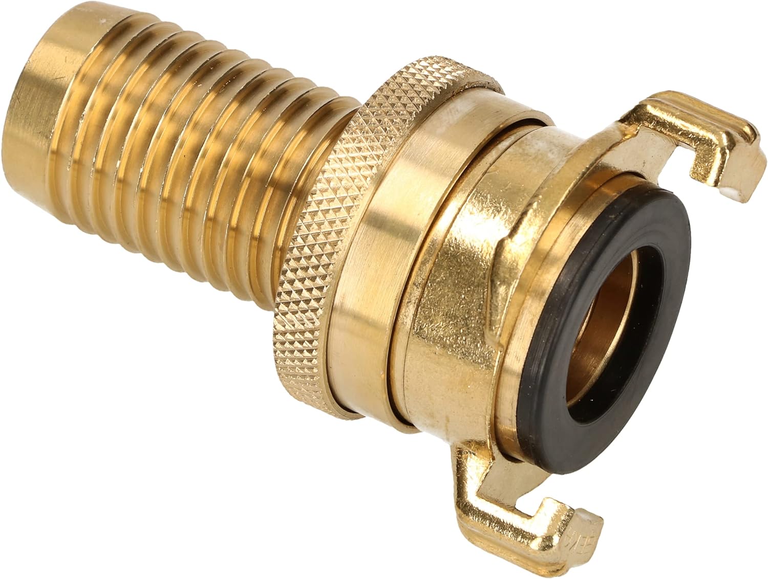 - TECHNISCHE DATEN – Schnellkupplung 1" für Gartenschlauch 25mm – Gewinde: 1 Zoll, Schlauchdurchmesser: 25mm, Abstand Sicherungsnoppen: 40mm, Gesamtdurchmesser: 55mm, Höhe: 78mm, Material: Messing, Material Dichtung: Gummi, Gewicht: 203g