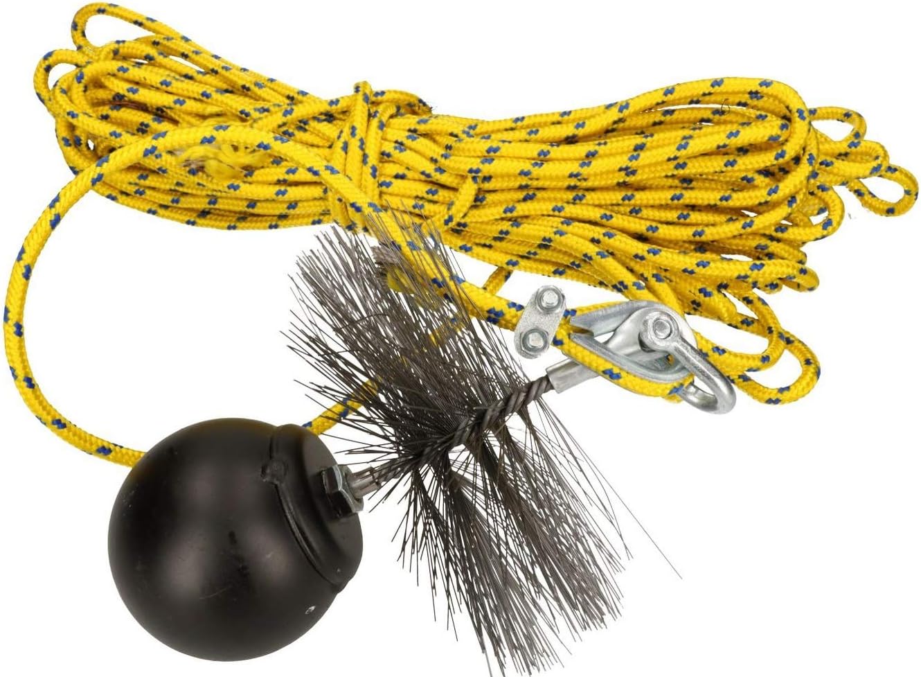 • ROBUSTHEIT- Dank der professionellen und sehr hochwertigen Verarbeitung vom gesamten Rauchfangkehrer SET, erfolgt das Reinigen sehr einfach und schnell. Die Gewichtkugel als auch der Fegebesen sind sehr robust und garantieren uns einen sehr langen Nutzzeitraum. Das Seil ist strapazierfähig und reissfest auch nach mehreren Jahren. Der Federstahl ist so produziert worden, dass auch ein gröberes Reinigen die Borsten nicht beschädigt oder verbiegt.