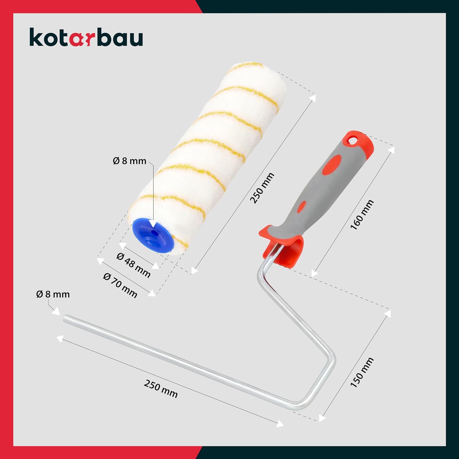 - EIGENSCHAFTEN – Der KOTARBAU Farbroller zeichnet sich durch eine lange Lebensdauer und Beständigkeit gegen alle aggressiven Lösungsmittel aus und eignet sich daher perfekt zum Auftragen von Emulsionen, Latex- und Silikonfarben, Dispersionsfarben,