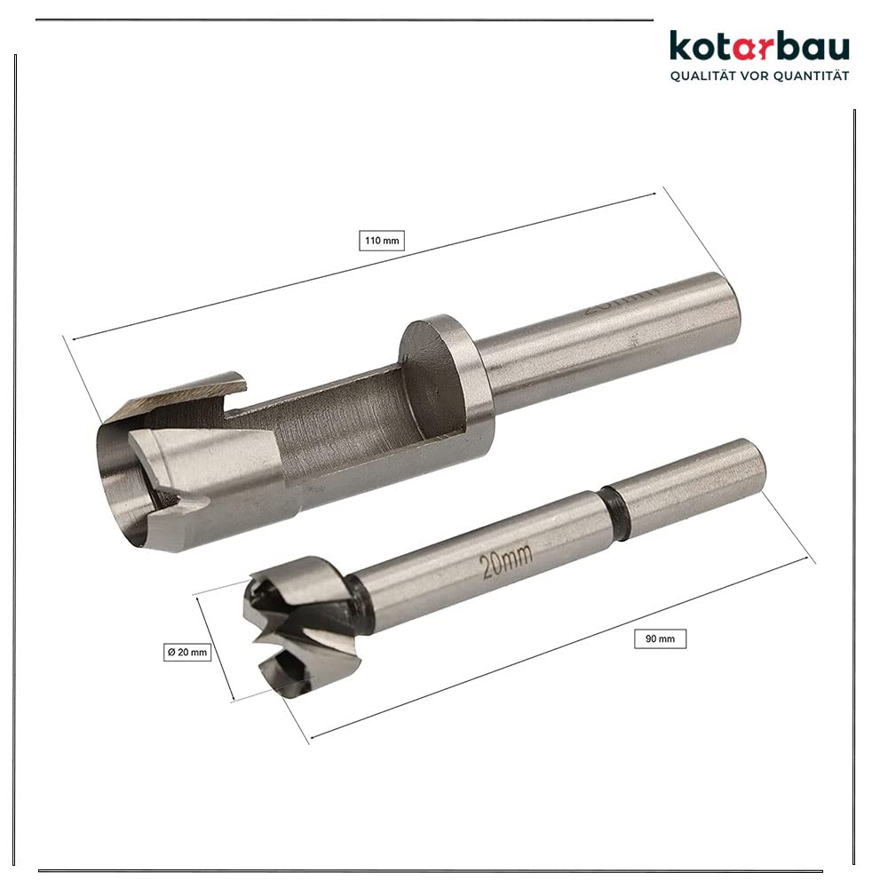 - TECHNISCHE DATEN – Forstner- & -Zapfenbohrer 20 mm – Durchmesser: 20 mm, Gesamtlänge Forstnerbohrer: 90 mm, Gesamtlänge Zapfenbohrer: 110 mm, Gewicht: 165 g, Anwendung: für Holz, Schaft: rund, Material: Kohlenstoffstahl, Farbe: Silber